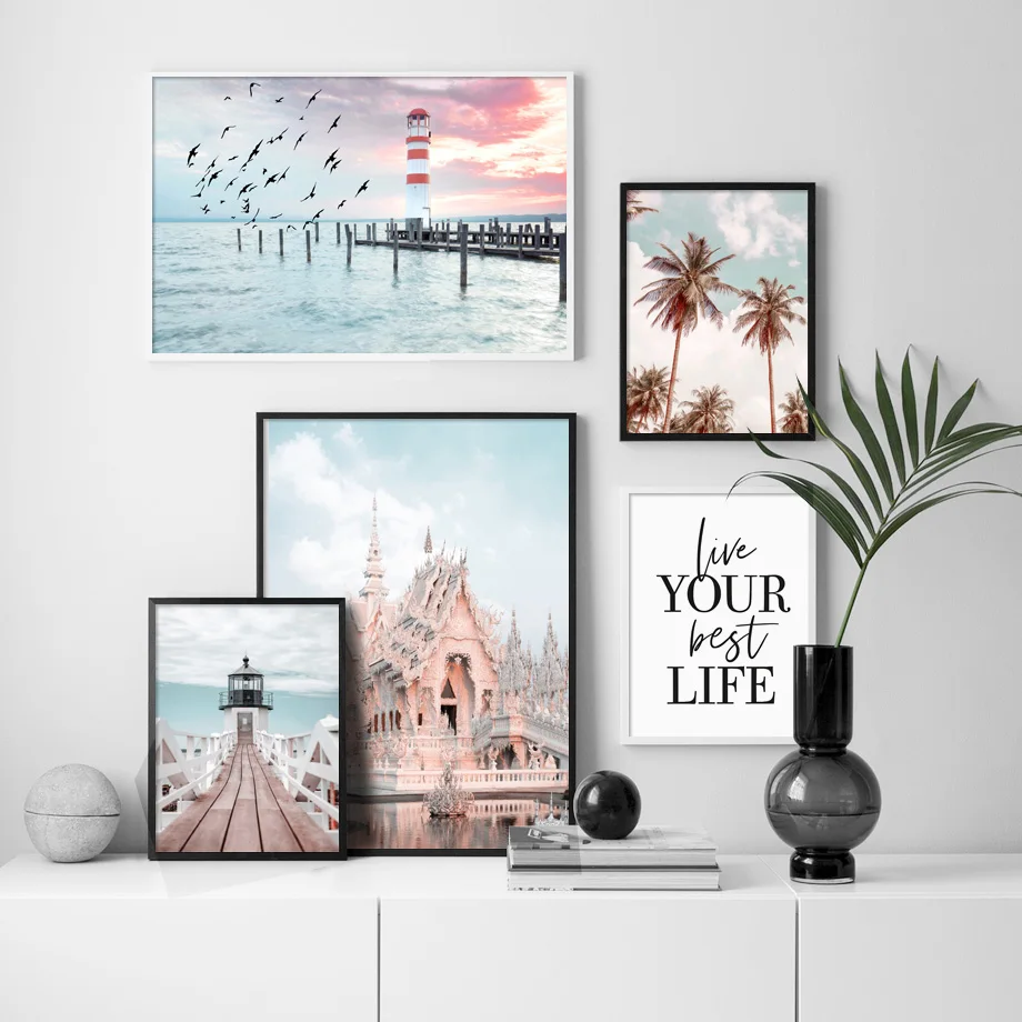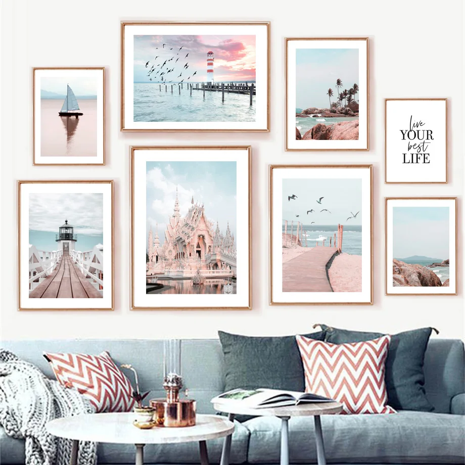 Чиангмай белый храм парусная лодка Пирс море скандинавские стены Искусство Холст живопись плакаты и принты картинки для декора гостиной