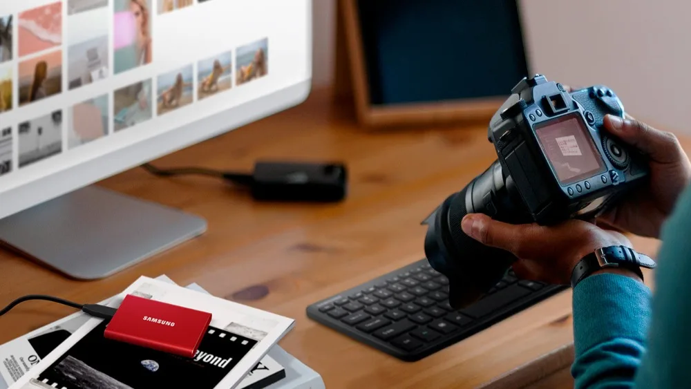Светильник, карманный портативный SSD T7 обеспечивает быструю скорость благодаря легкому и надежному хранению данных для передачи больших файлов. Если вы храните важные бизнес-документы, игры или фильмы, портативный SSD T7 дает вам Скорость и долговечность в посылка размером с ладонь. Представляем Новинка стандарта внешнее запоминающее устройство, в наличии три мощности, чтобы удовлетворить ваши потребности: 500GB, 1 ТБ или 2 ТБ.