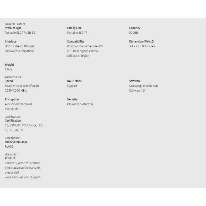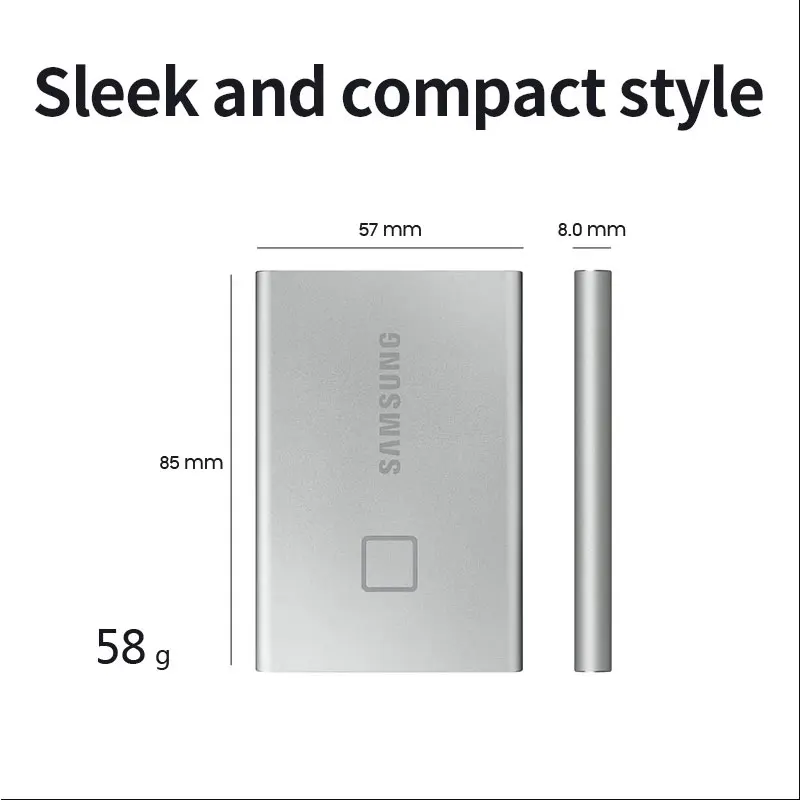 * Совместимость с хост-устройствами может отличаться. Для некоторых операционных систем может потребоваться переформатирование сенсорного экрана T7. Пожалуйста, найдите список совместимых устройствWww.samsung.com/support.