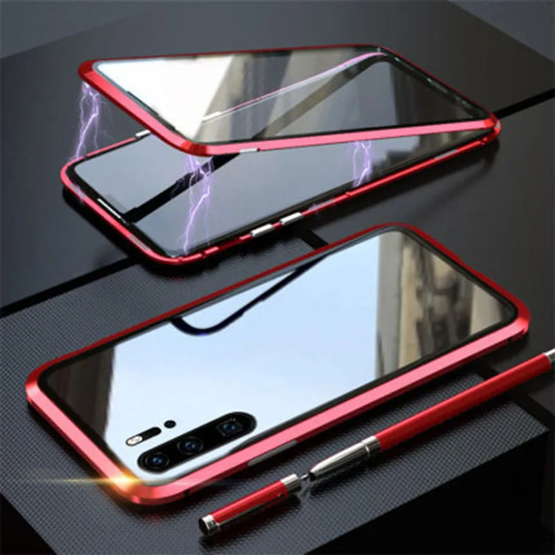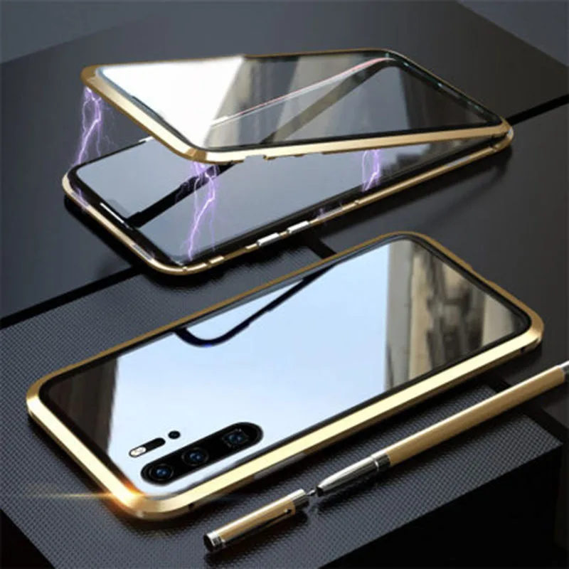 Двухсторонний стеклянный магнитный металлический чехол для Huawei P...