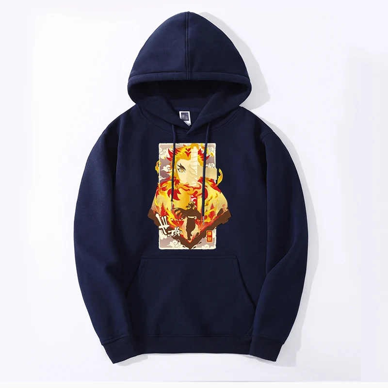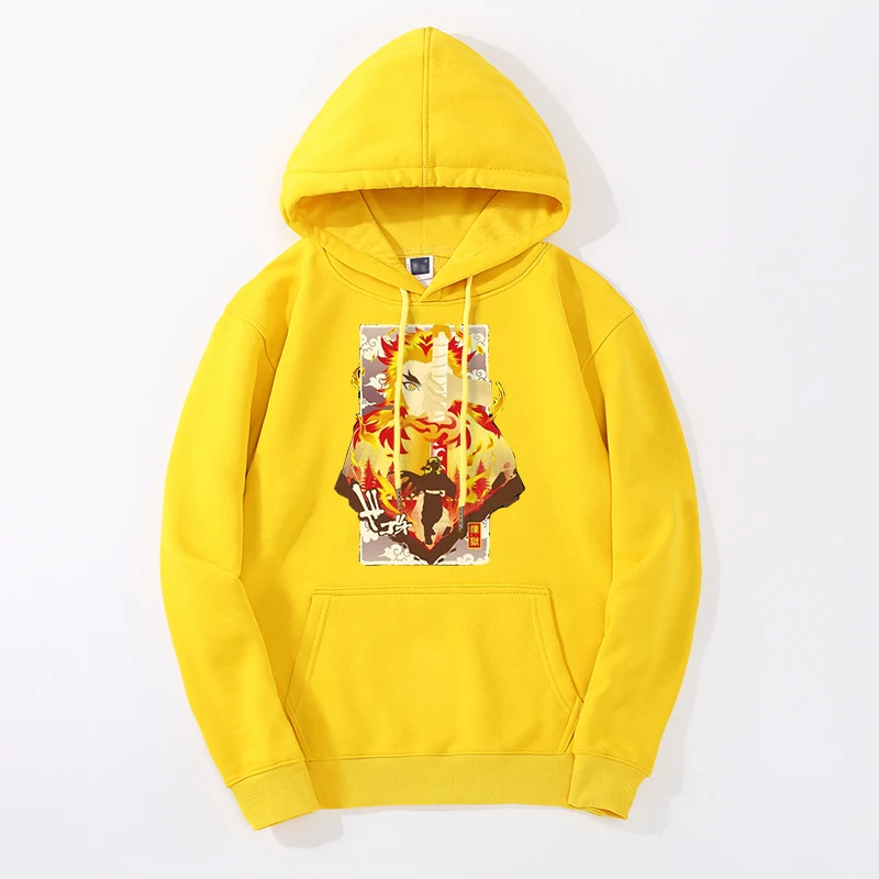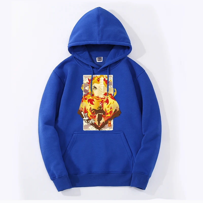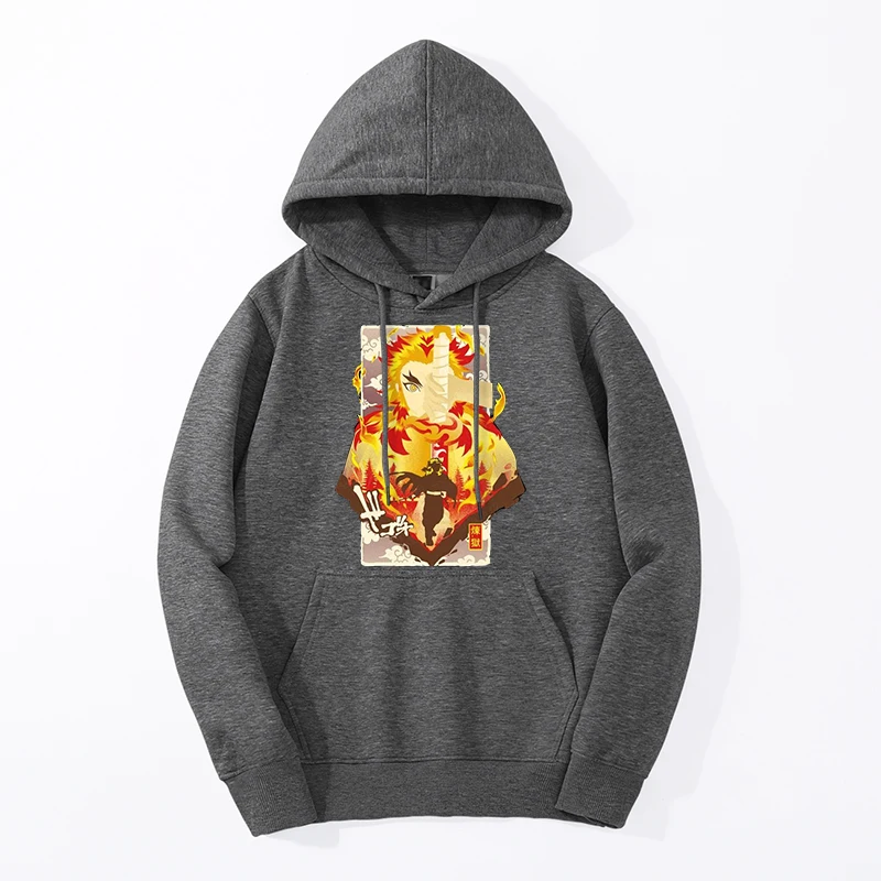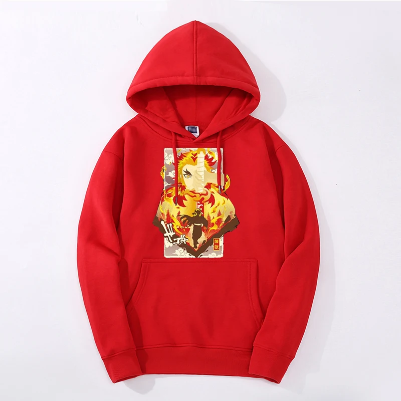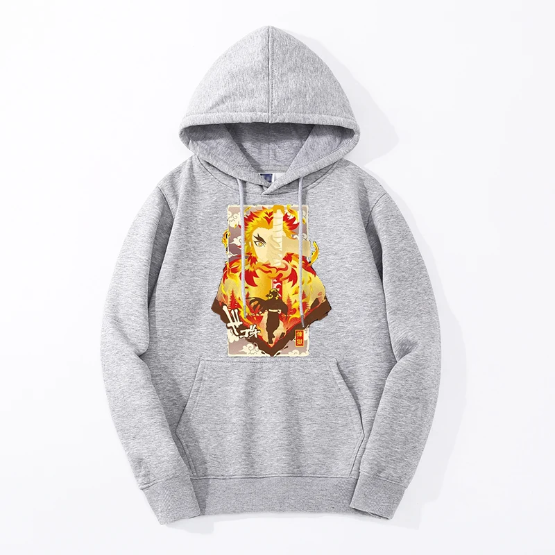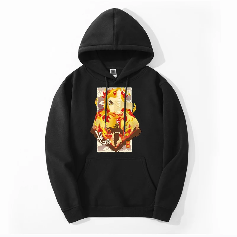 Зимние мужские модные толстовки Rengoku Kyoujurou с изображением рассекающих демонов, толстовки с капюшоном и шлейфом, уличная одежда в стиле хип-хоп с принтом, Крутая толстовка
