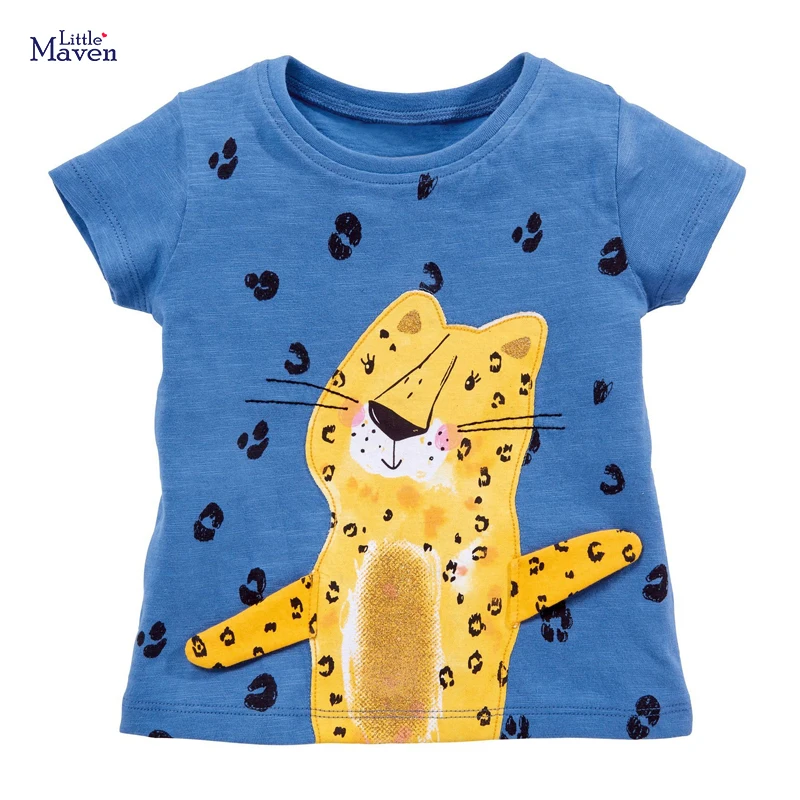 Летняя одежда Little maven, полностью хлопковая футболка, синяя милая и удобная одежда для маленьких девочек и кошек, для младенцев 2-7 лет