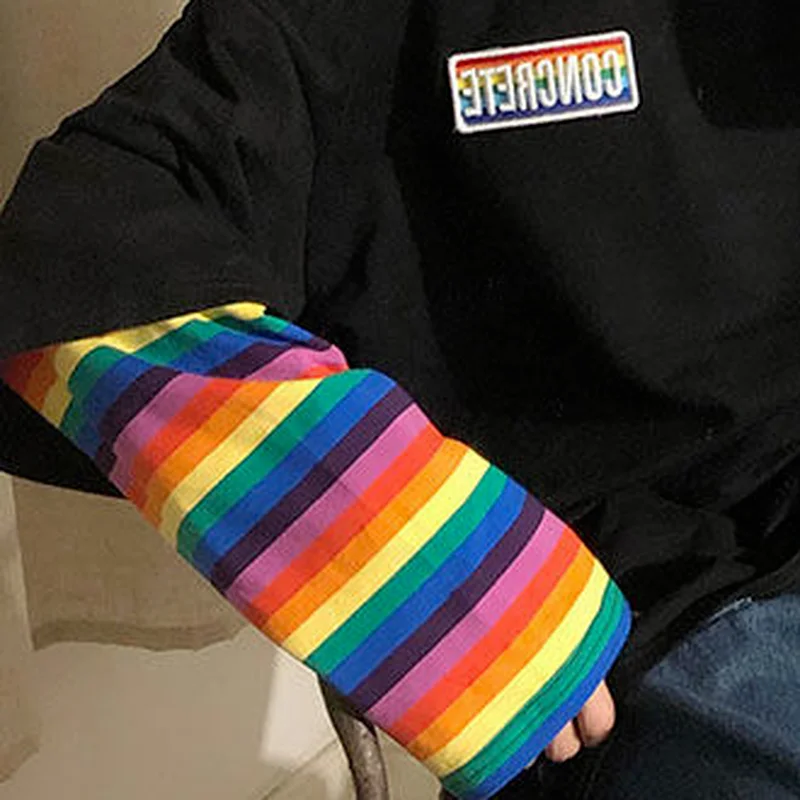 Женская футболка с длинным рукавом, в радужную полоску, с нашивками...