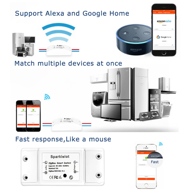 Умный выключатель ZigBee на 10 А, Беспроводной Выключатель с дистанционным светильник, работает с Alexa Google Home
