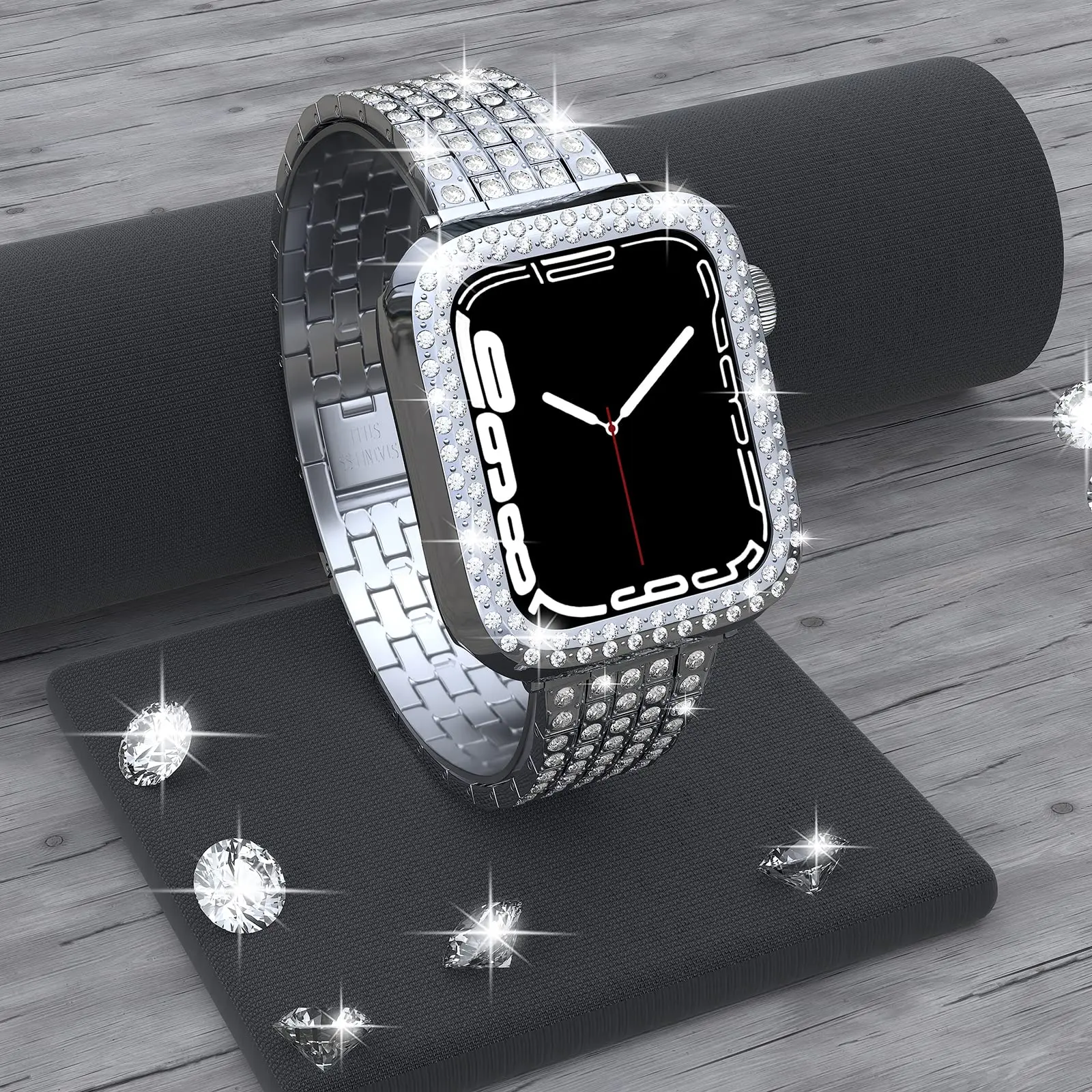 Чехол + браслет со стразами для Apple watch band 40 мм 41 мм 38 мм 45 мм 44 мм 42 мм 38 мм, металлический ремешок для наручных часов iWatch Series 3 4 5 6 se 7