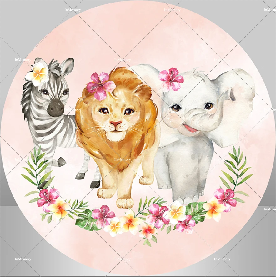 Мультяшные животные зибра Лев Слон круглый фон крышка мальчик день рождения фон для фотостудии