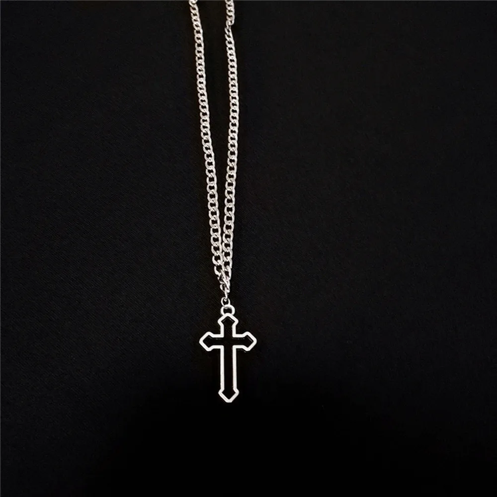 Винтажная пустотелая подвеска в форме черного Креста, ожерелье для женщин и мужчин, серебряный цвет, Крутое уличное ожерелье, Ювелирное Украшение, кулон, крест