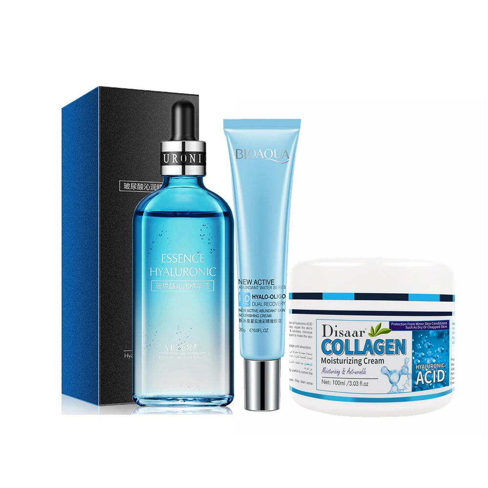 Набор для ухода за кожей, сыворотка с гиалуроновой кислотой эсенция для лица, коллагеновый увлажняющий крем против морщин, Осветляющий крем для кожи вокруг глаз