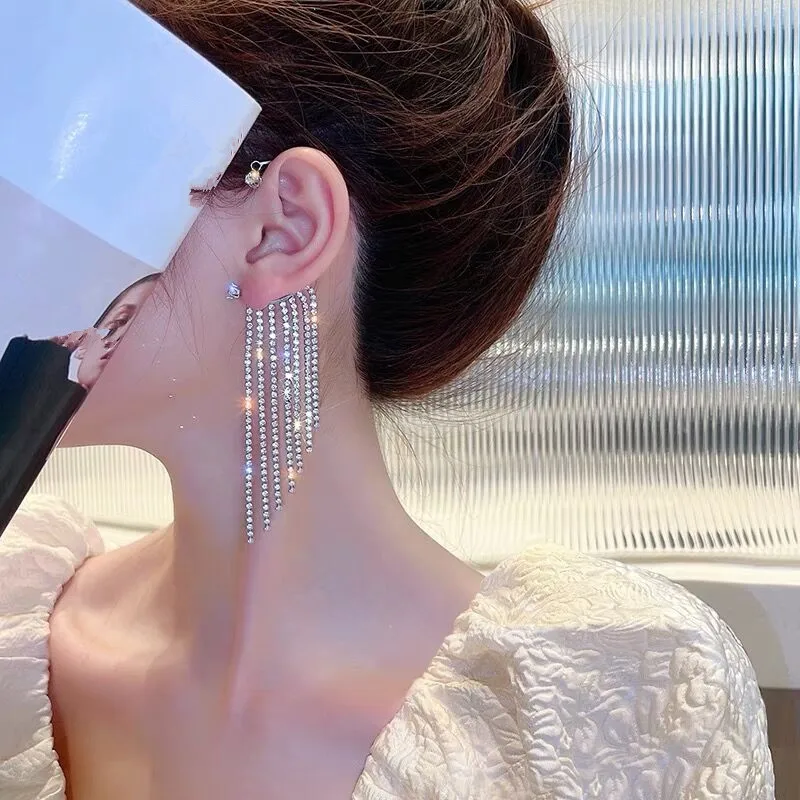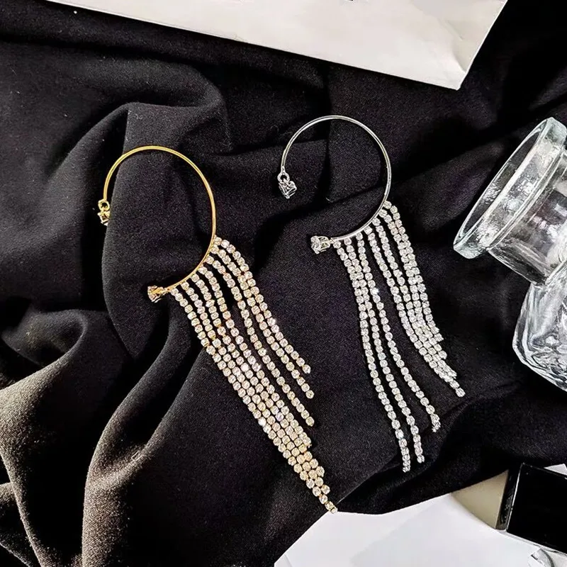 Роскошные серьги-клипсы с длинной кисточкой в виде костей для женщи...