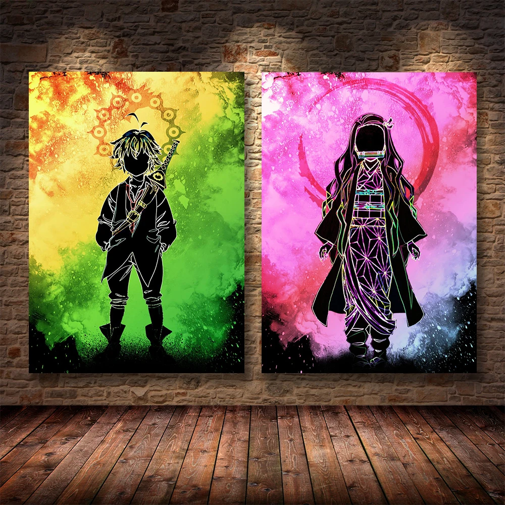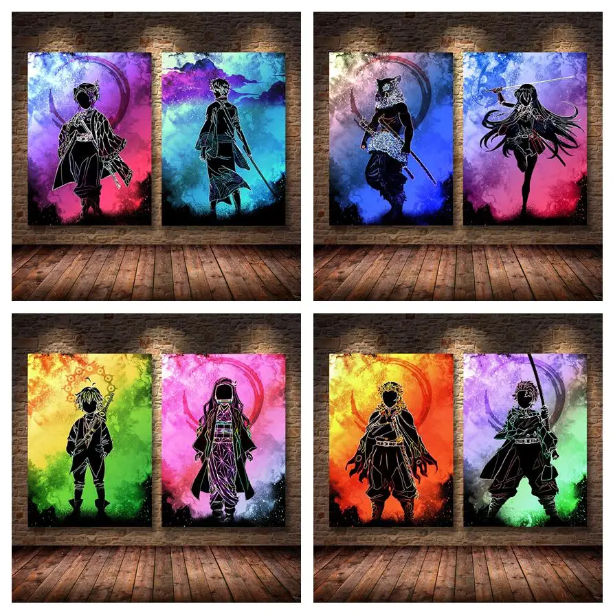 Постер аниме рассекающий демонов, цветная холщовая картина с героями аниме, абстрактная настенная живопись, декор для гостиной, спальни