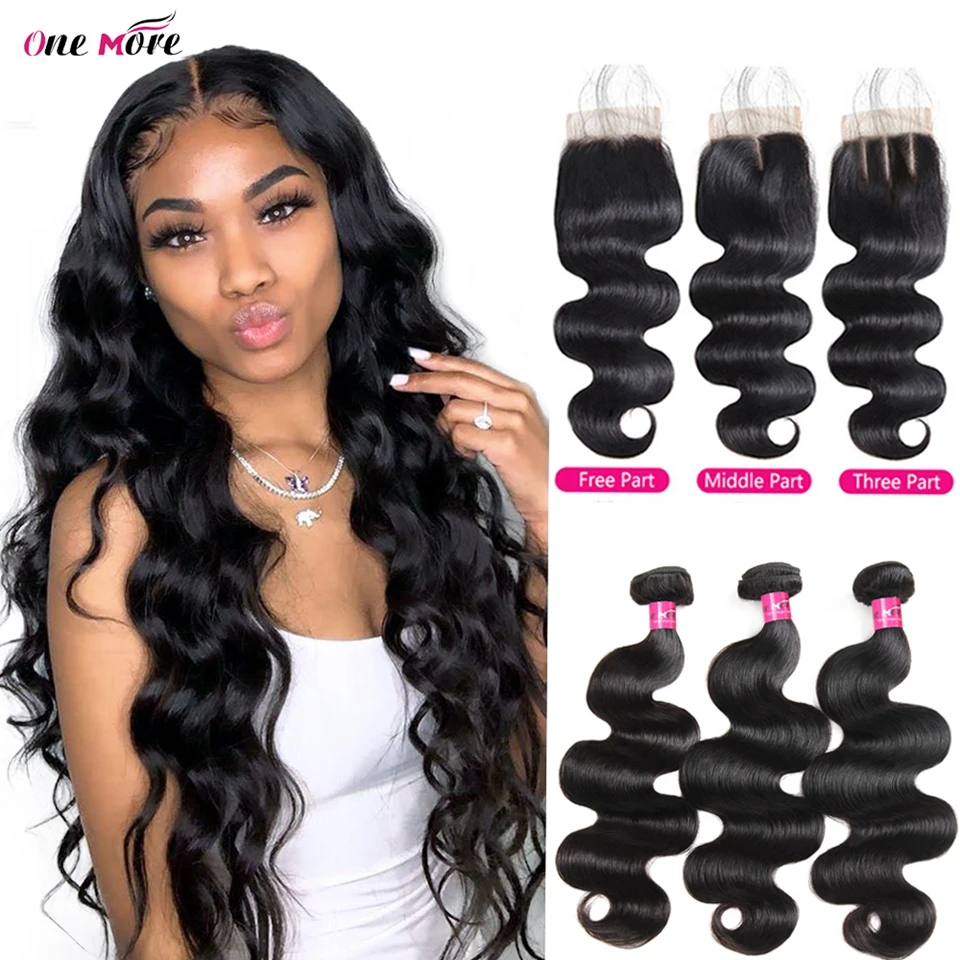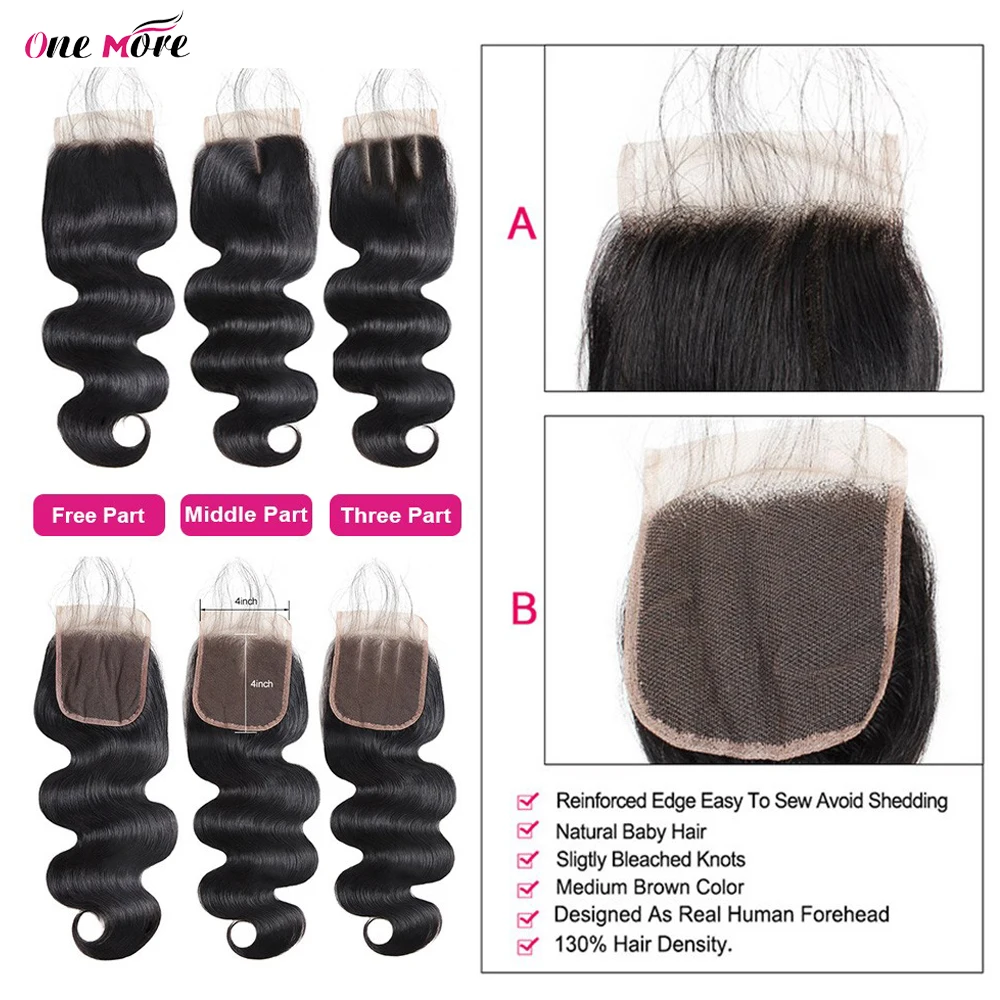 Бразильские волнистые пучки с застежкой, 3 пряди с застежкой, свободная часть, человеческие волосы Remy пряди с застежкой 4x4 дюйма, еще один