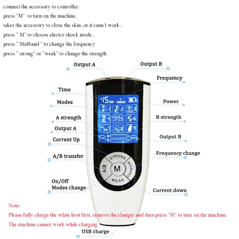 Нажмите «Puise / Numb / Absorb / Auto», чтобы выбрать режим электрошока.