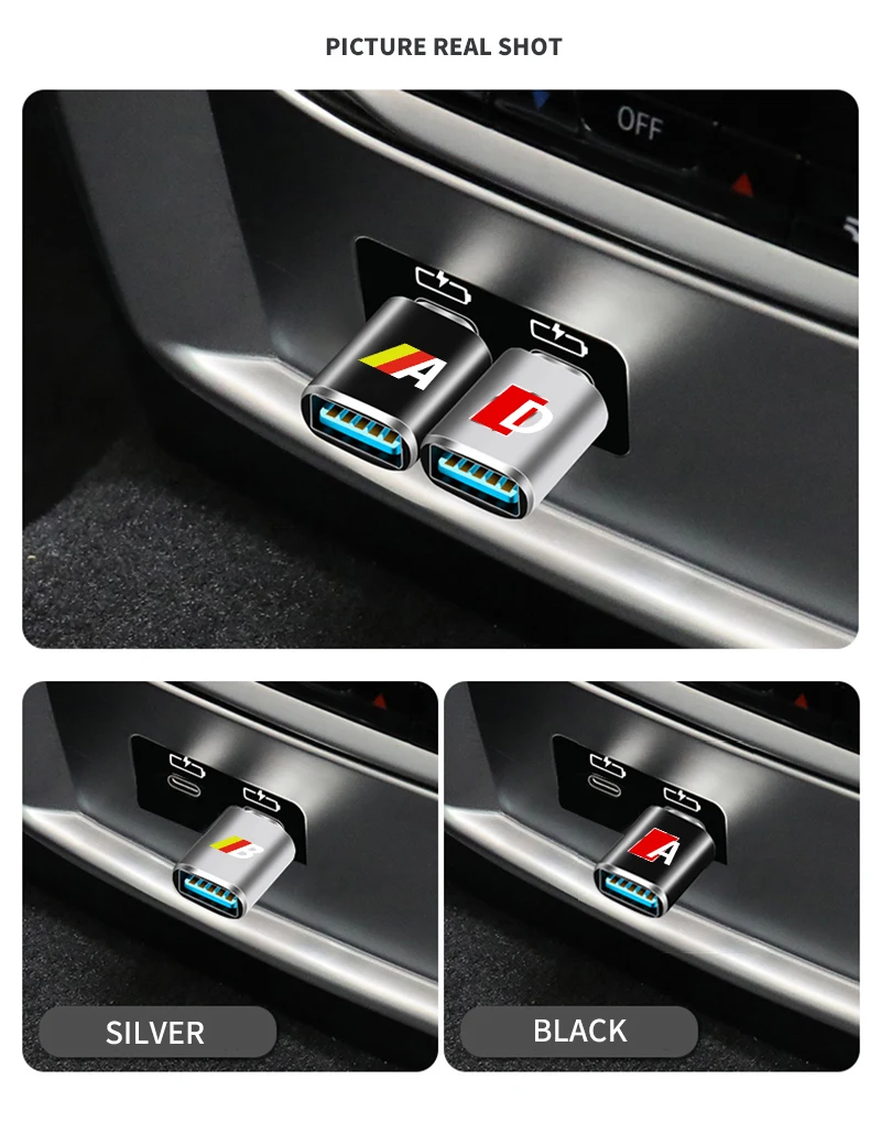 Функция: USB3.0 Цвет изделия: черный/серебристый Интерфейс Type-C задней воздушной розетки оригинального автомобиля преобразуется в интерфейс USB Удобно для семьи и друзей, больше не боится, что в машине нет usb-порта для зарядки Износостойкий и прочный, длительный срок службы и более высокая скорость Маленький и изысканный, простой в использовании, не занимает местаПосылка: