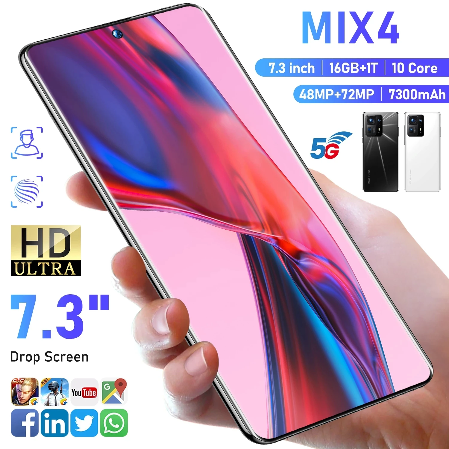 Смартфон глобальная версия MIX4, 7,3 дюйма, 16 ГБ + 1 ТБ, Android 12, 100% оригинальный телефон, 4Gтелефон, 48 м + 72 м, полный экран, разблокирован