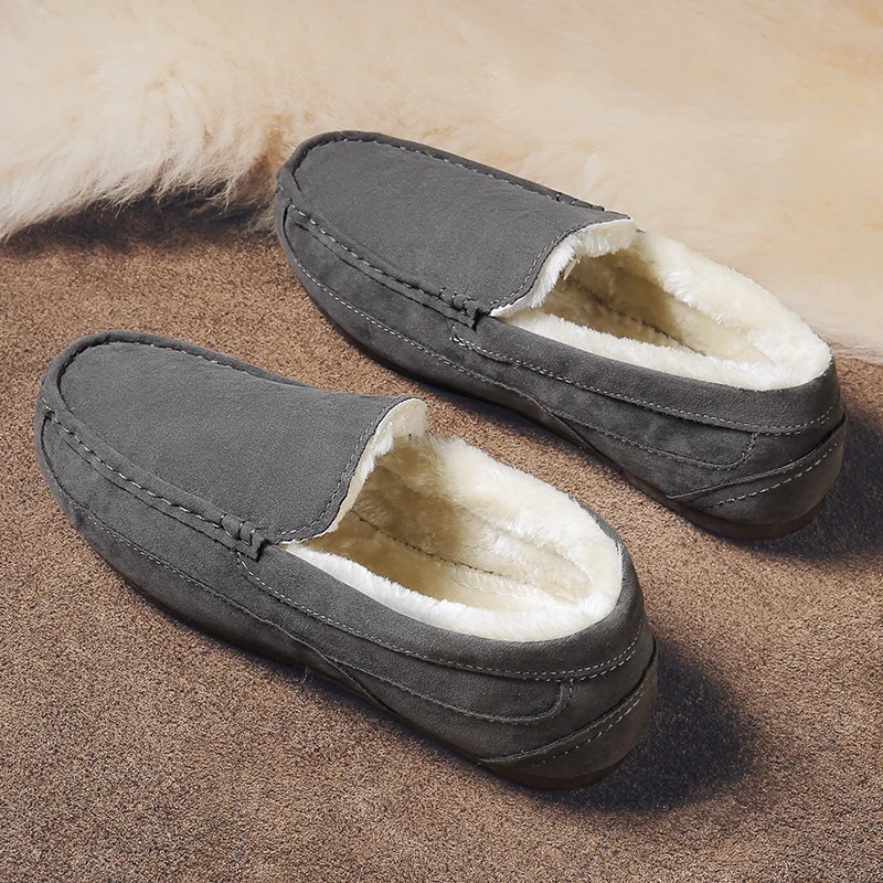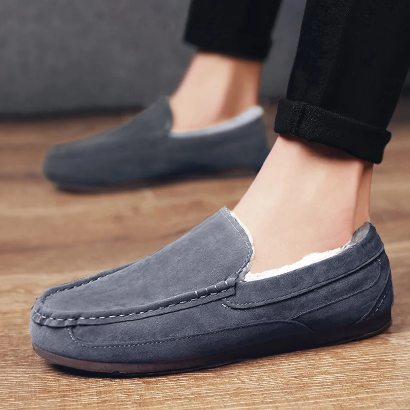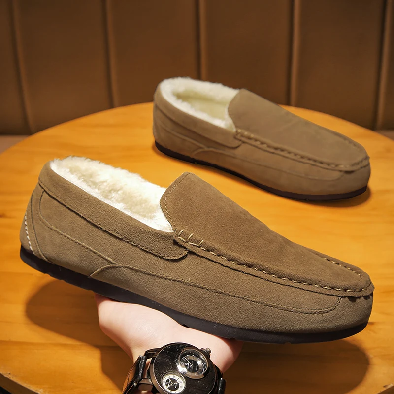 Брендовые модные стильные мягкие термальные Мокасины, мужские лоферы, сохраняющие тепло снежные туфли, мужская обувь на плоской подошве, повседневная обувь для вождения с мехом внутри