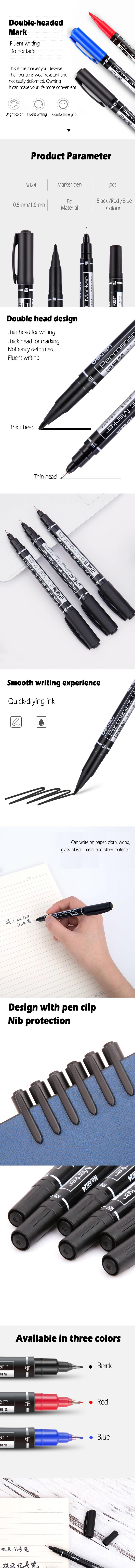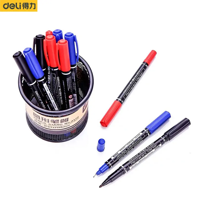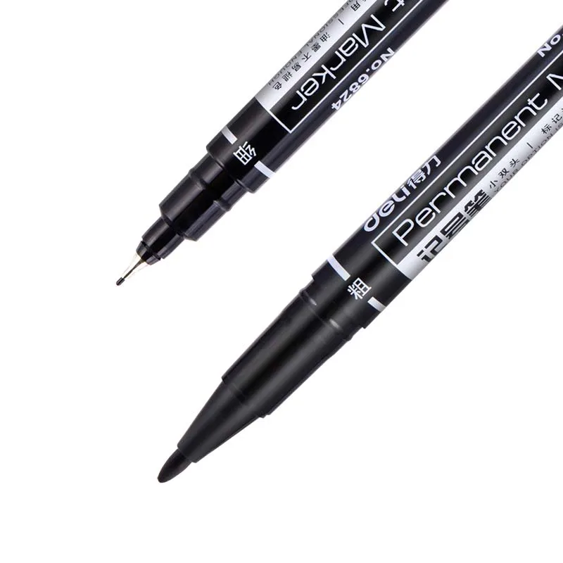 Deli 9 шт. водостойкая маркерная ручка Перманентный двойной наконечник 0,51,0 мм перо Черные синие красные художественные маркеры ручки Школа Офис Канцтовары