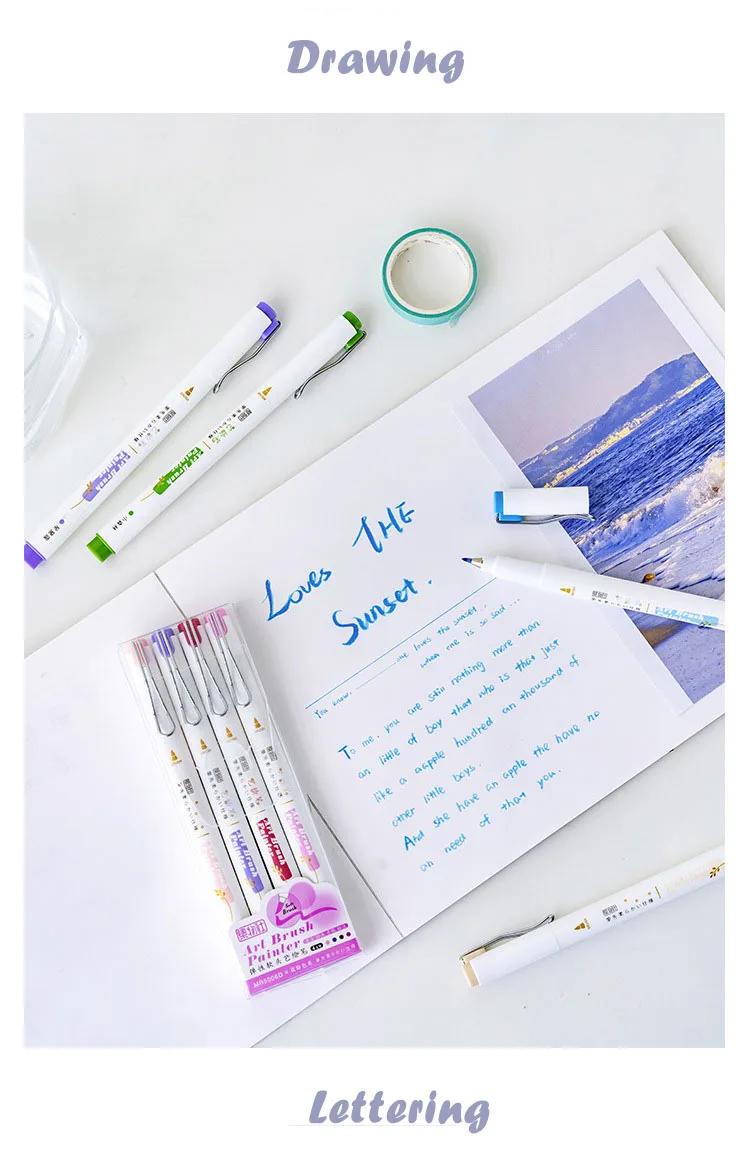 Набор кистей для каллиграфии 12 шт., набор художественных маркеров для надписи, эскизов, журналов, скрапбукинга, школьные принадлежности сделай сам, Канцтовары