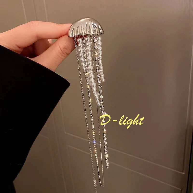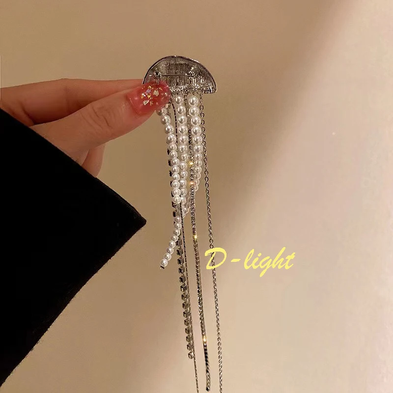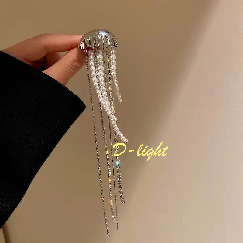 Изысканная Элегантная Брошь в виде Медузы с длинной кисточкой из жемчуга и стразами, женский аксессуар для свитера, костюма, платья, вечеринки, банкета, хороший подарок