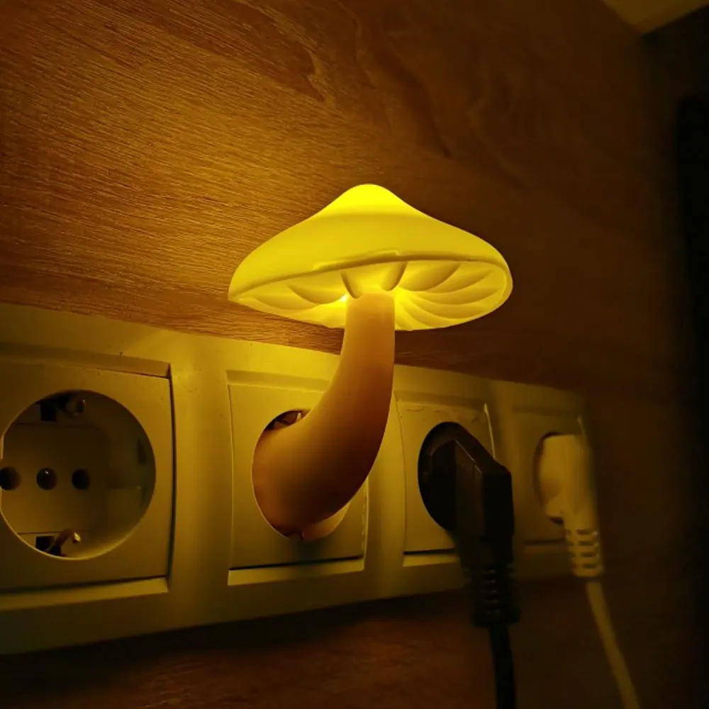 Светодиодный ночсветильник в виде грибов, настенная лампа с подключаемой розеткой, с датчиком управления теплым белым светом для вечерние, спальни, светильник дома
