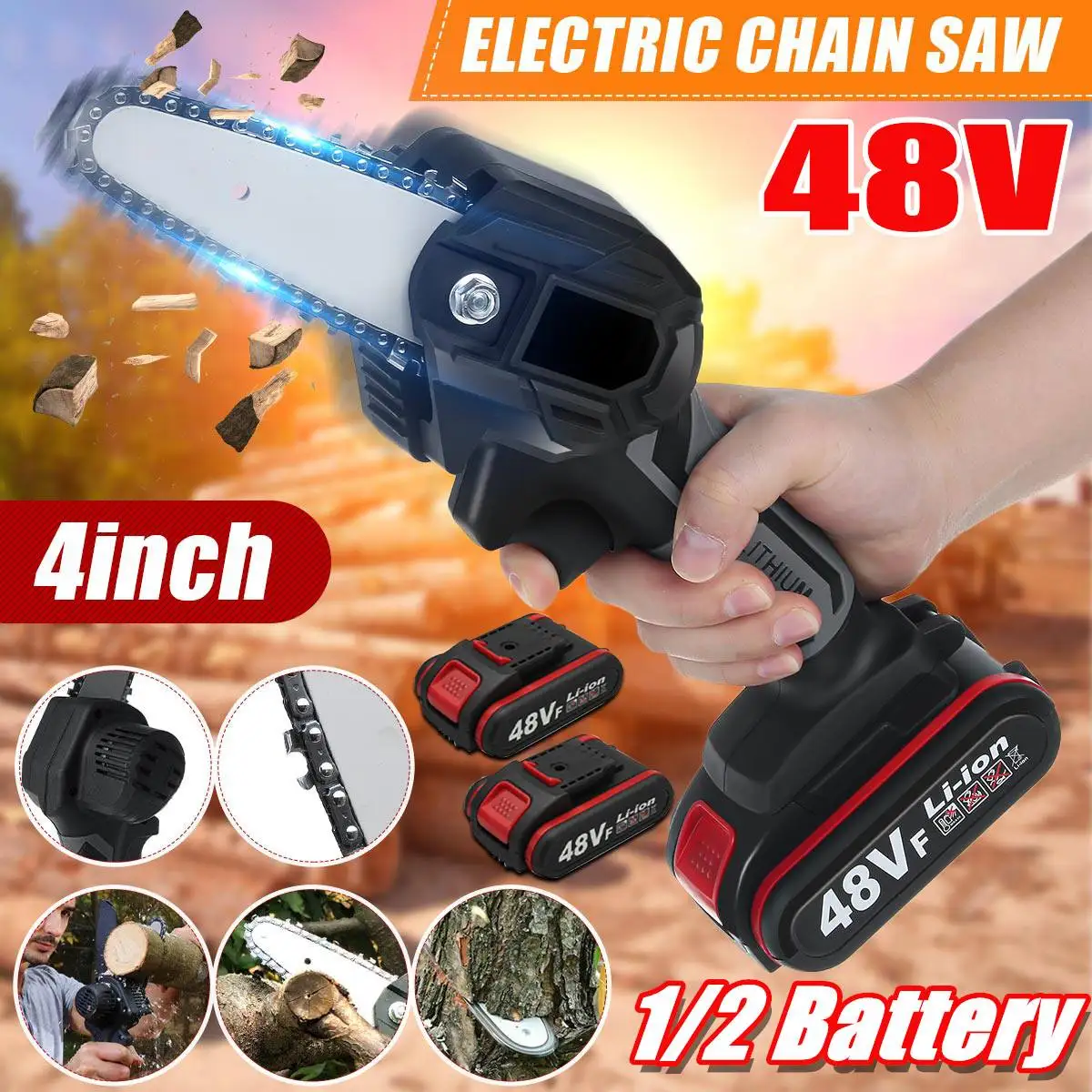 4-дюймовая электрическая мини-пила 48 В, цепная пила с литиевым акк...