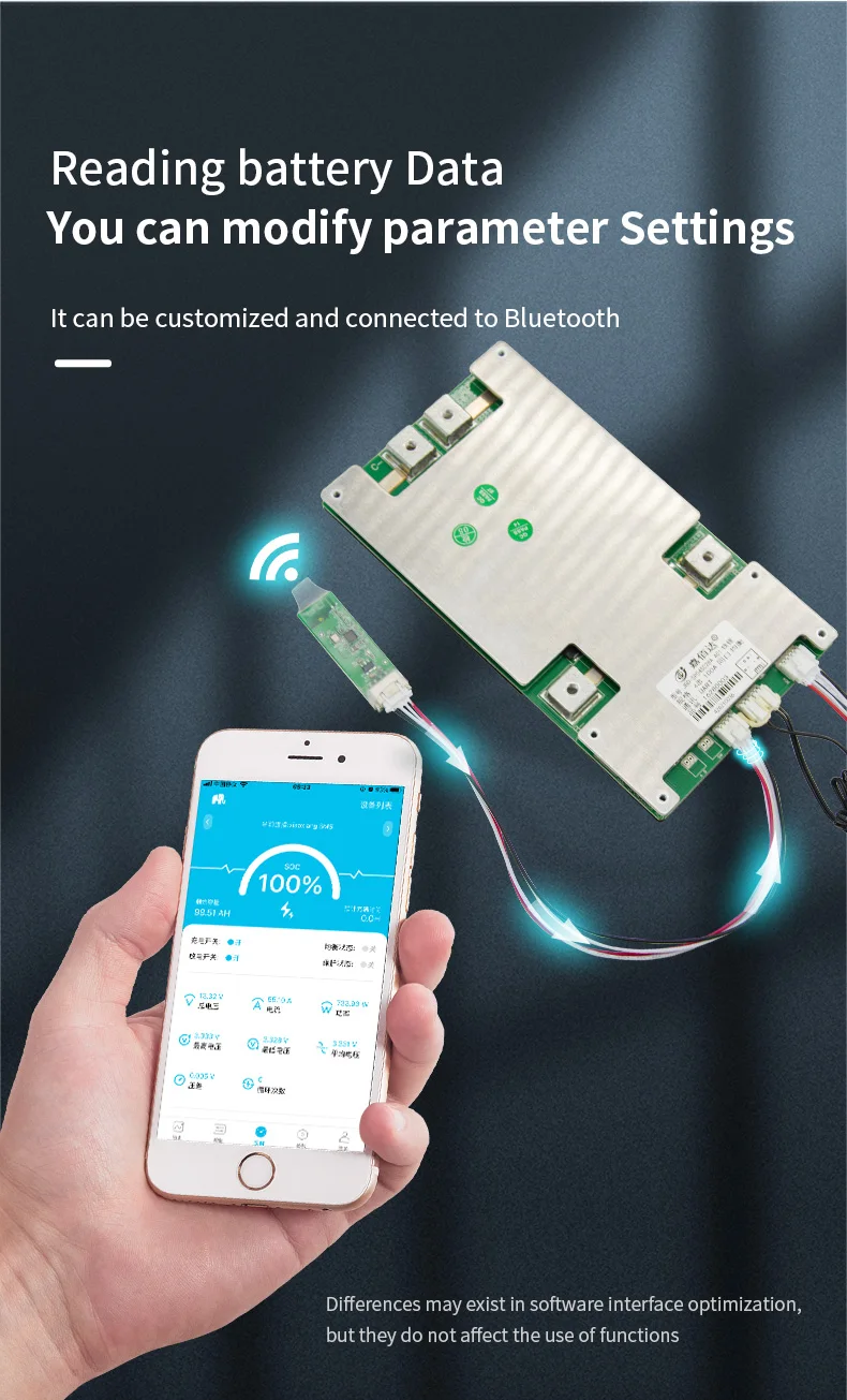 JBD Smart Bms 4S Lifepo4 100A Bluetooth 3S 12 В с балансировочной платой UART 60A 80A 120A 150A для литий-ионной литиевой батареи