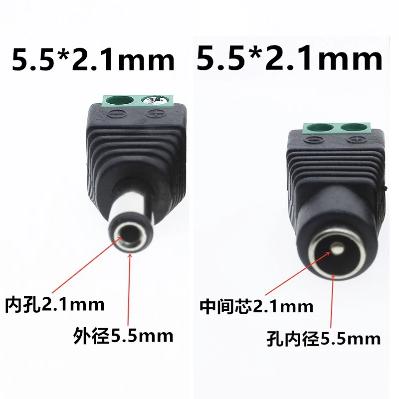 Новинка и высокое качество Простой и профессиональный внешний вид для силовых кабелей Легкий для камеры и светодиодный светильник прокладки установки, экономит время и больше безопасности кабельного соединения Нет электрического крана, нет сращивания, нет обжима, но только маленький отвертка 5,5 мм x 2,1 мм Женский Разъем питания Внутренний Диаметр штекера: 2,1 мм Внешний Диаметр штекера: 5,5 мм