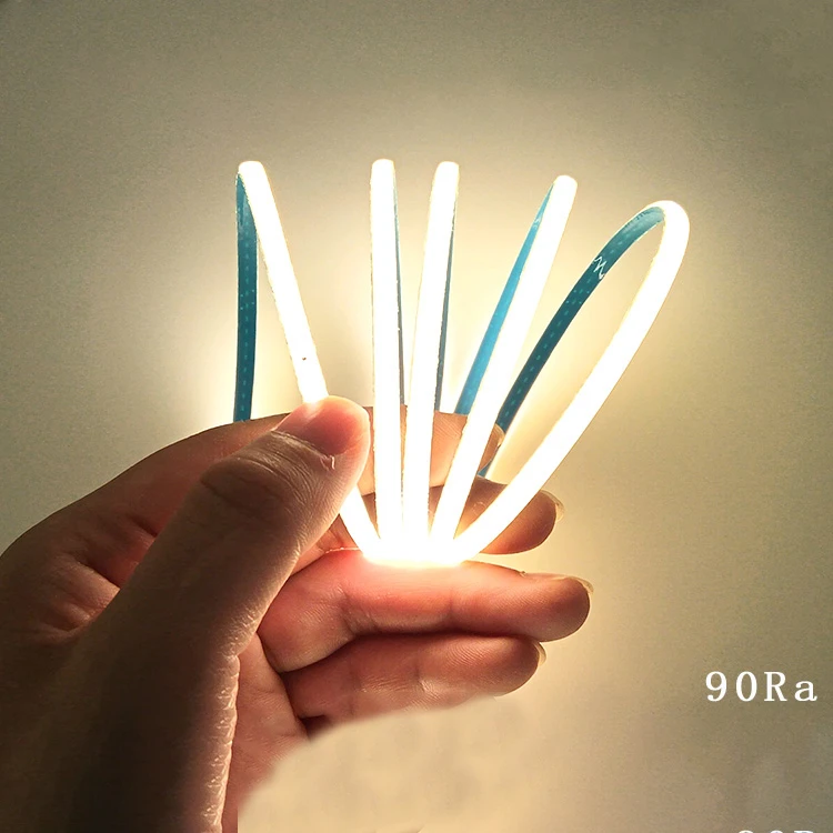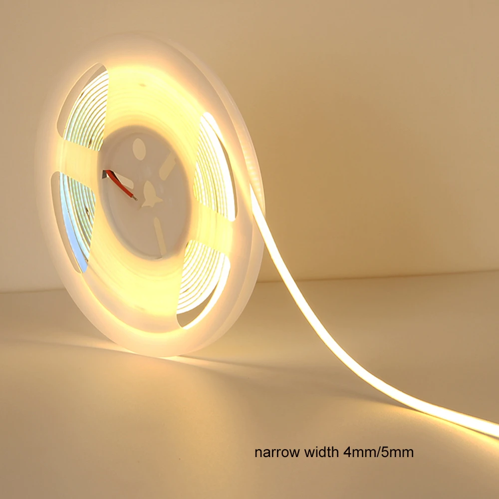 FCOB светодиодный ленточный светильник, узкий, 4 мм, 5 мм, 8 мм, высокая плотность, гибкий, FOB, COB светодиодный светильник s RA90, с регулируемой яркостью, линейный, для кухонной комнаты, DC12V, 24 В