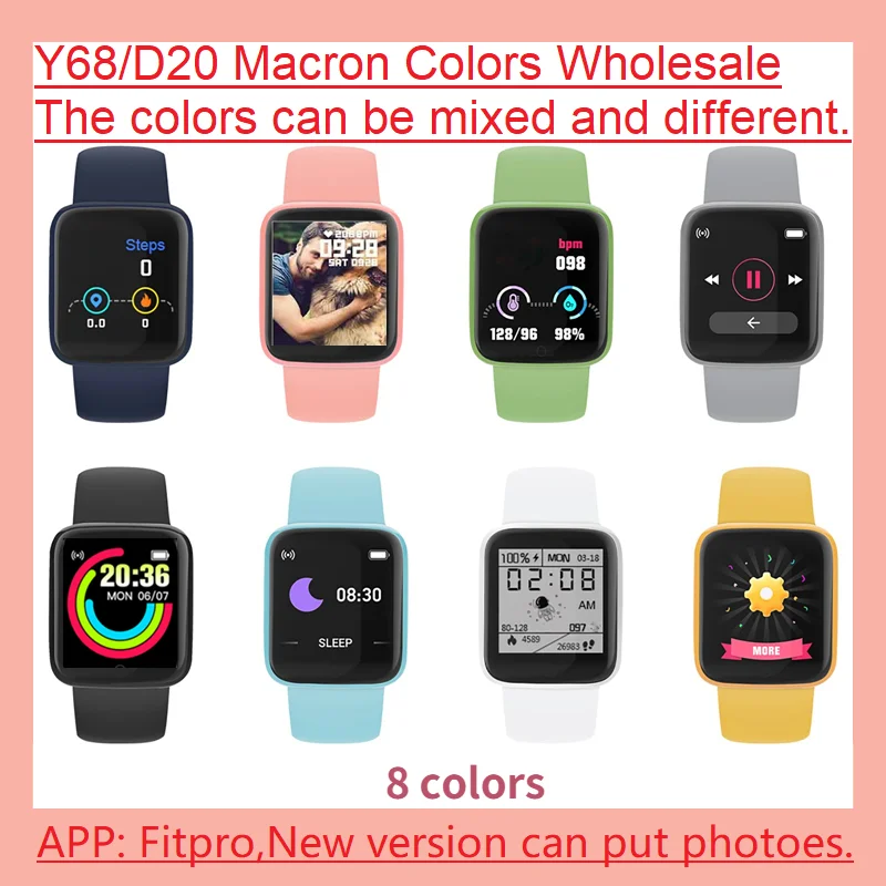 Y68/D20 Макрон цвета Оптовая продажа смарт-часы 1,44 дюймов обновленные спортивные Смарт-часы положить фото сна фитнес-трекер напоминание Сообщения Версия обновления батареи. В два раза лучше, чем другие!Новая обновленная версия, поместите фотографию на часы и управление музыкой! Напоминание:1. Система поддержки приложений: Android 4,4 и выше, IOS 9,0 и выше.2. Не используйте зарядные устройства выше 5 В/2 А.3. Часы не должны быть подвержены воздействию горячей воды, потому что горячая вода заставит часы отображать туман. Быстрая зарядка через USBНовый метод зарядки браслета, съемный и быстросъемный дизайн браслета, может быть заряжен подключением к usb-интерфейсу, устраняя проблемы с зарядным кабелем и зарядным устройством. Умный спасательный помощникЧасы могут отслеживать шаги, калории, расстояние, качество сна и т. Д. В тот день. В то же время вы можете подключиться к смартфону для просмотра информации, удаленно фотографировать и извлекать мобильные телефоны и другие интимные и практические функции, чтобы сделать вашу жизнь более удобной. ТренировкаЗахватите интенсивность упражнений и состояние здоровья и своевременно Настройте свой фитнес-план. Приятный для кожи материалБраслет изготовлен из приятного для кожи, легкого и мягкого ТПУ материала, с легким дизайном и без ощущения от ношения. Основная особенность* Модель: умные часы D20* Приложение: FitPro* Версия Bluetooth: Bluetooth 4,0* Водонепроницаемый/водонепроницаемый: ежедневное использование (без плавания/дайвинга/купания и так далее)* Режим работы: сенсорная кнопка* Включение питания: Нажмите и удерживайте функциональную клавишу* Тип экрана: 1,44 дюймов TFT LCD* Совместимая Операционная система: Android IOS* Функции: упражнения, сообщения, будильник, дата, измерение сердечного ритма, напоминание о сидячем положении, мониторинг сна, время* Тип уведомления: для Facebook- TWITTER- WeChat WhatsApp* Тип сигнализации: вибрация Поддержка языка приложенияАнглийский, французский, итальянский, японский, корейский, польский, португальский, русский, упрощенный китайский, испанский, традиционный китайский и т. Д. Содержимое посылкаУмные часы-1 шт., руководство-1 шт.