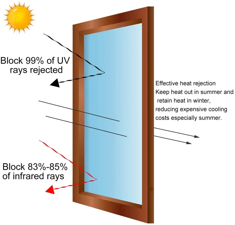 Наша DIY статическая пленка с отличным теплоизоляционным эффектом может эффективно блокировать УФ-лучи и тем временем держать комнатную температуру вниз.