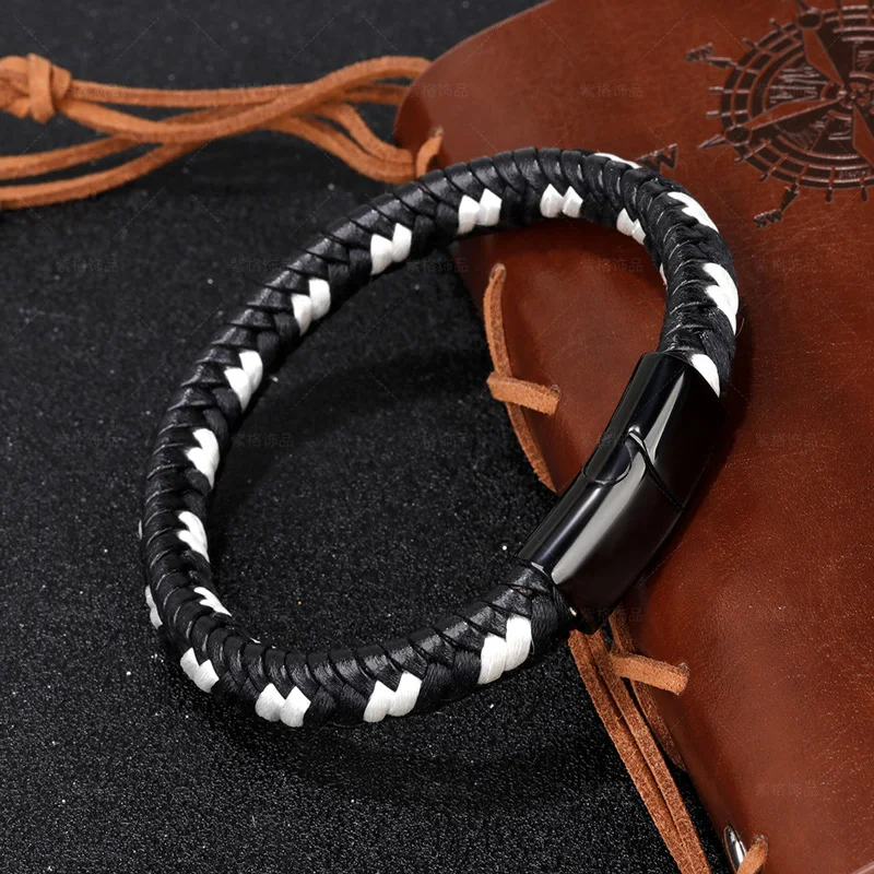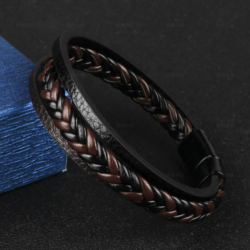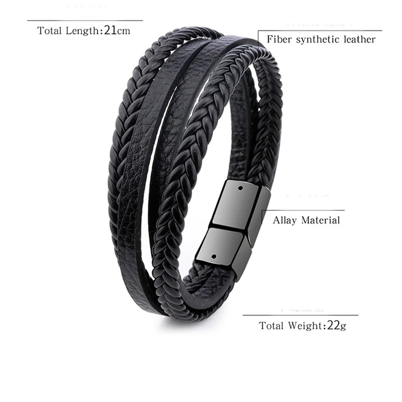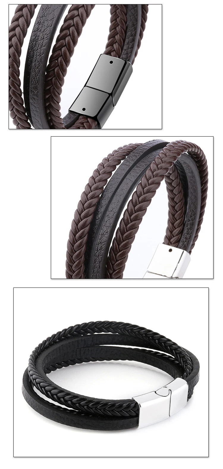 NIUYITID 2021 мужской Многослойный кожаный браслет магнитный черный...