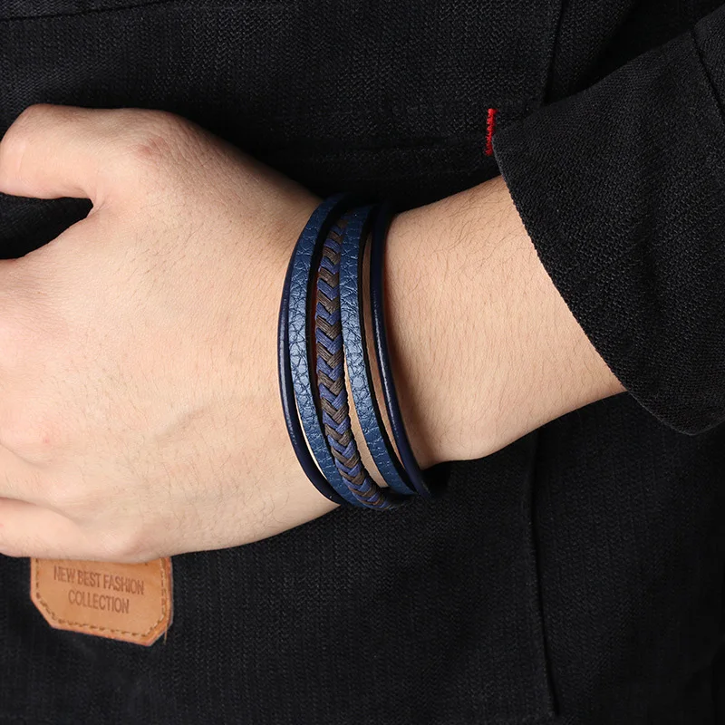 Плетеные браслеты ZOSHI из искусственной кожи синего цвета для мужч...