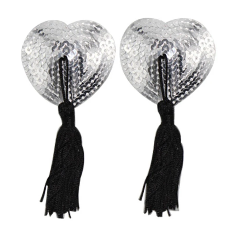 Накладка на соски с кисточками и блестками в форме сердца, сексуаль...