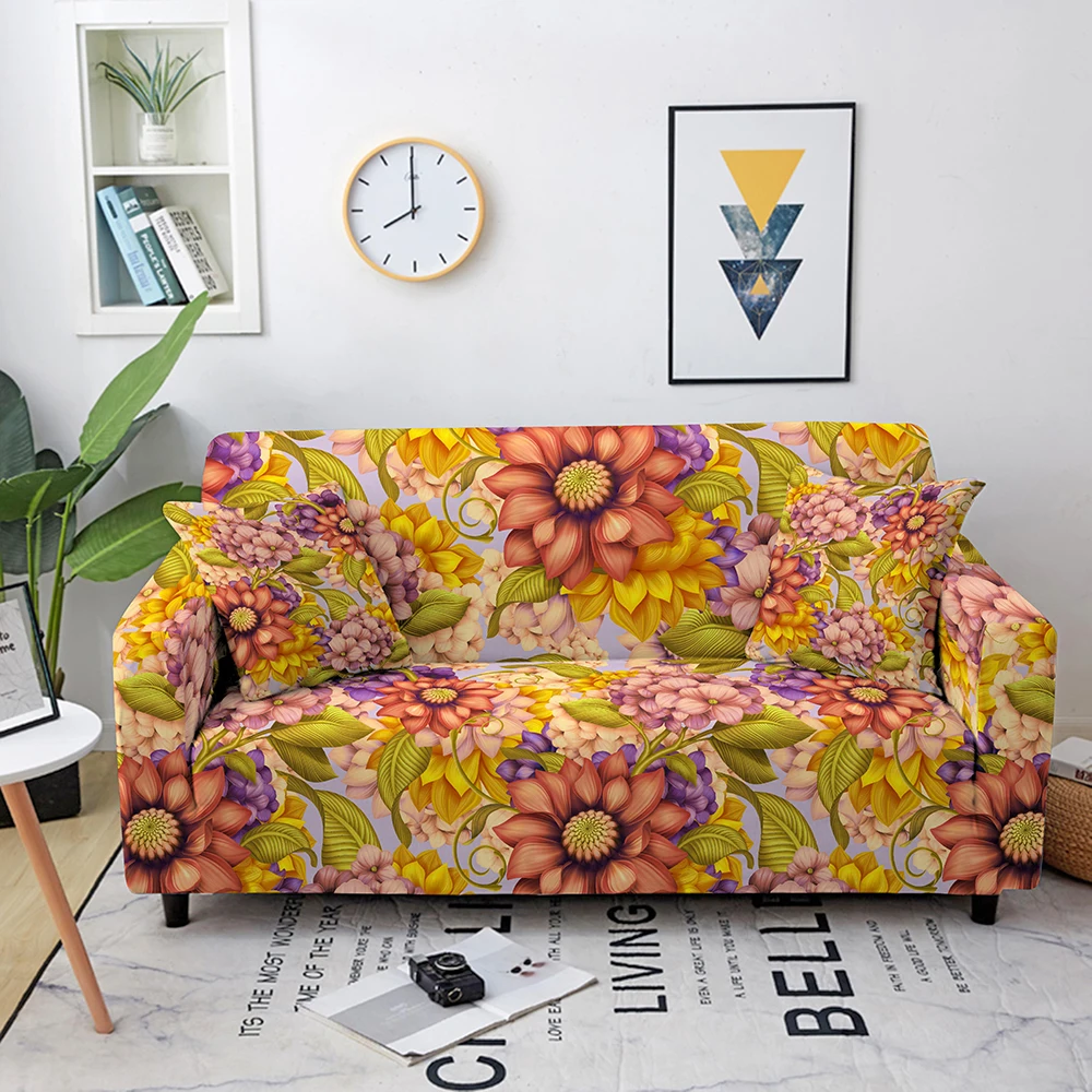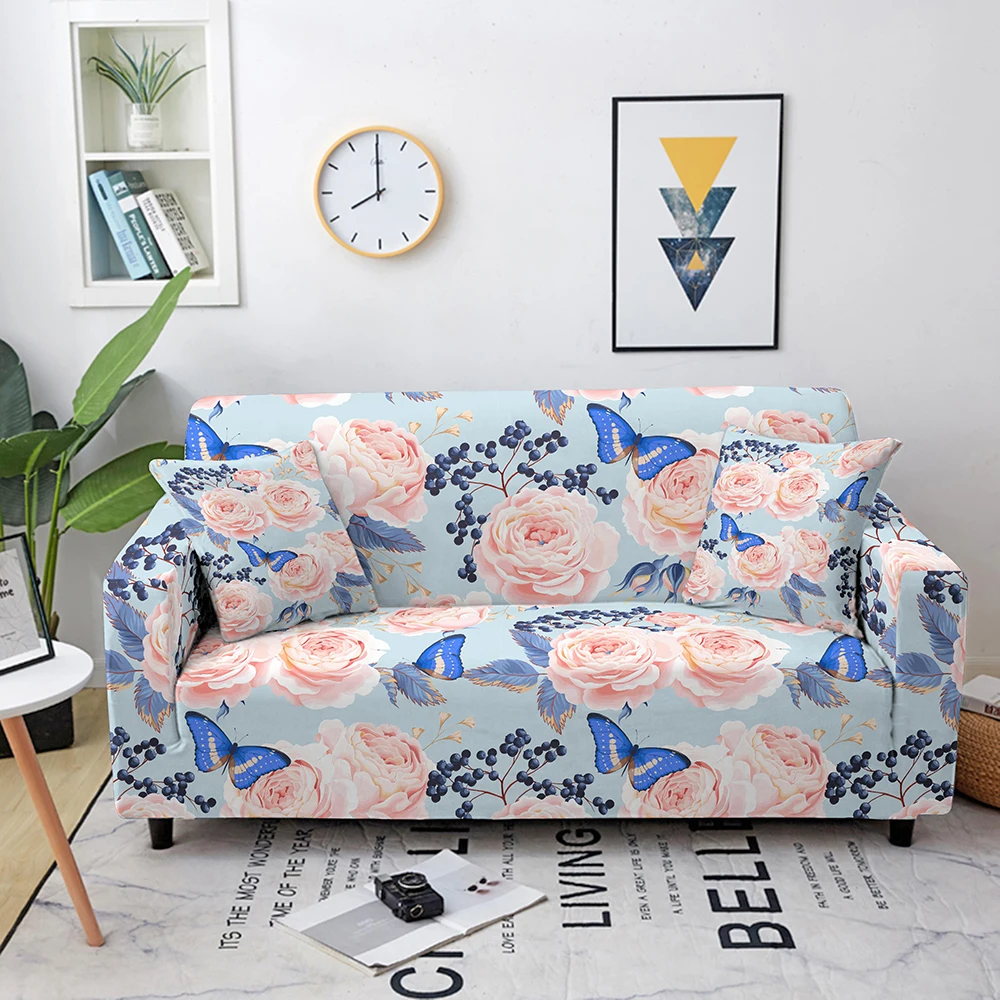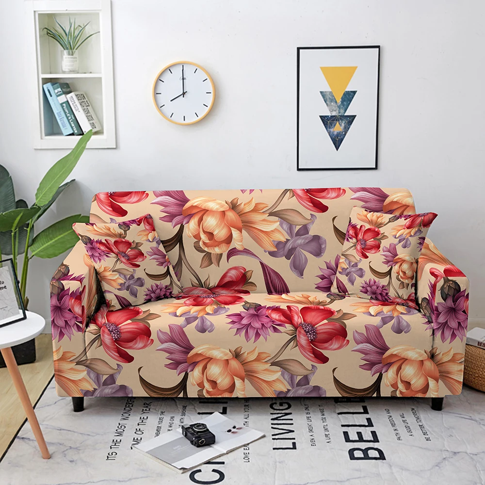 Красивый эластичный чехол для дивана с цветочным рисунком для гостиной, эластичный чехол для дивана из спандекса, полиэстеровый чехол для дивана для влюбленных, чехол для домашних животных