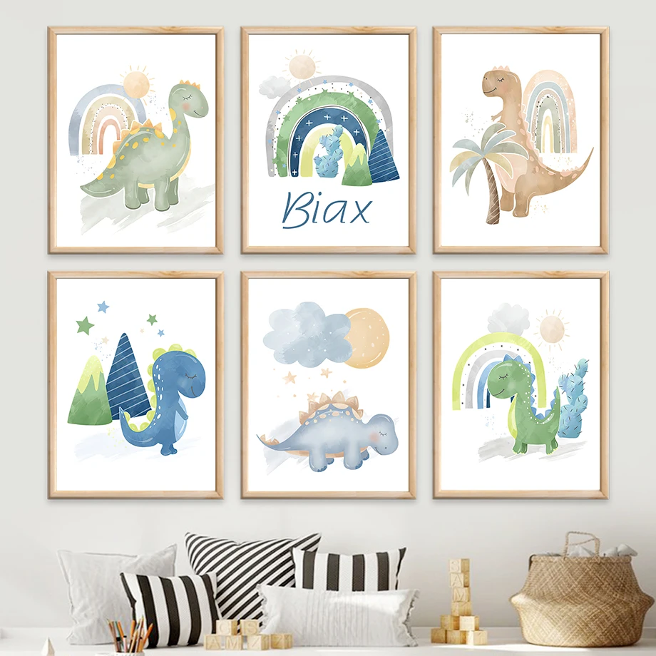 Динозавр солнце Радуга Алфавит цифры мультфильм скандинавские плакаты и принты настенная живопись на холсте настенные картины декор для детской комнаты