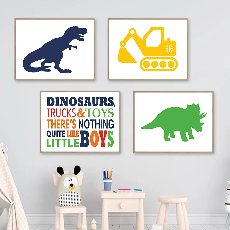 Мультяшный динозавр пожарная машина цитаты детский Северный плакаты и принты Настенная картина на холсте настенные картины декор детской комнаты