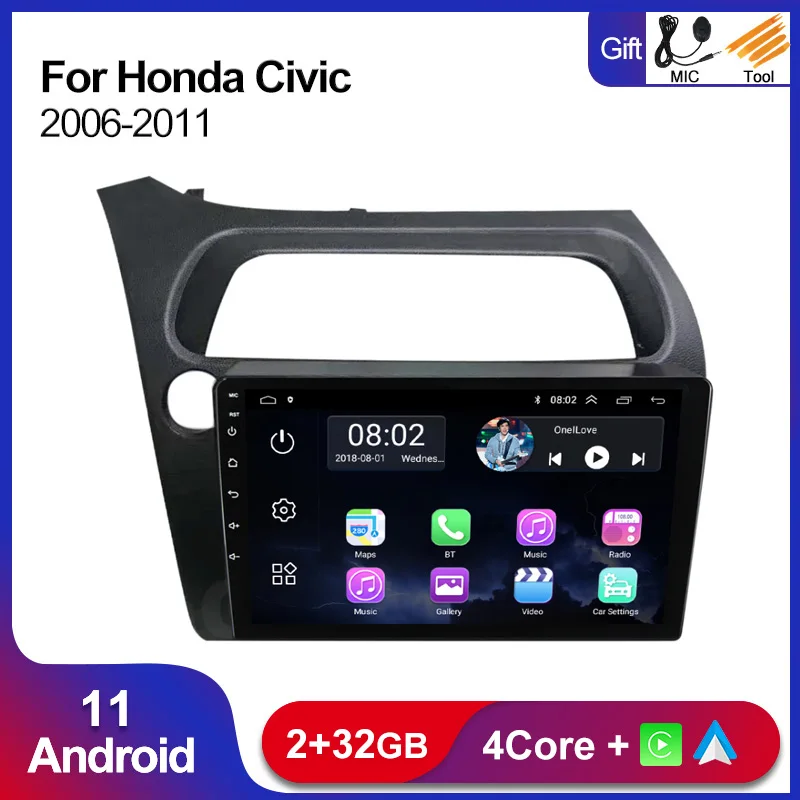 Автомагнитола 9 дюймов, экран 2.5D, Android 11, для Honda Civic Hatchback 2006-2011, автомобильный радиоприемник, мультимедийный плеер, стерео GPS-навигатор BT