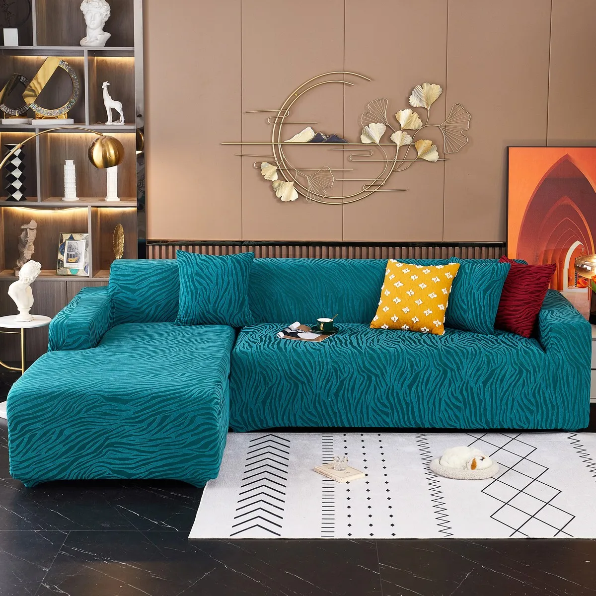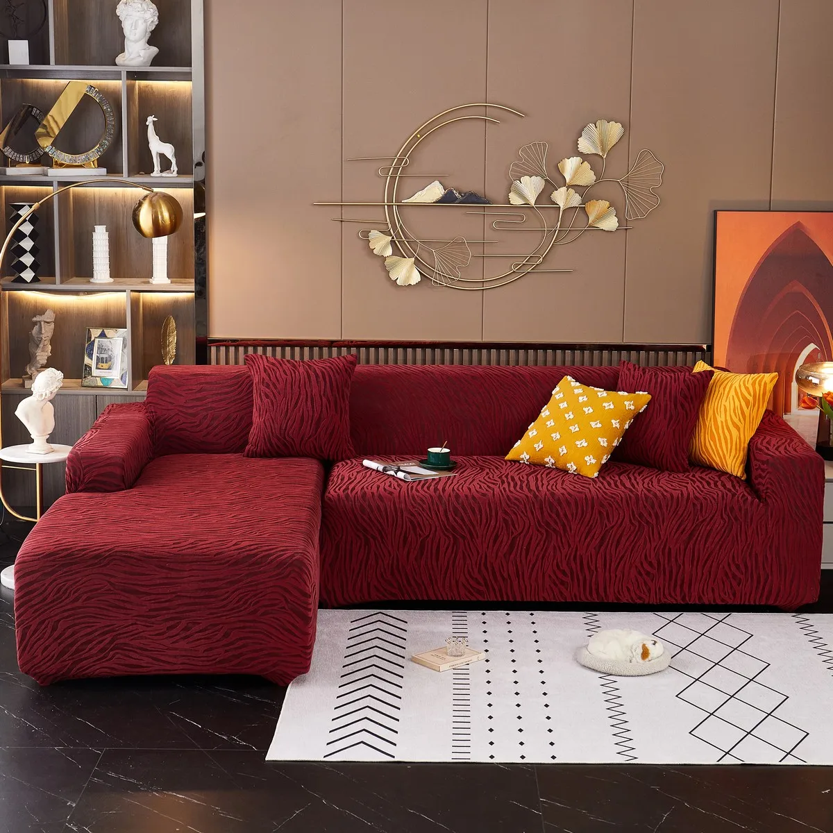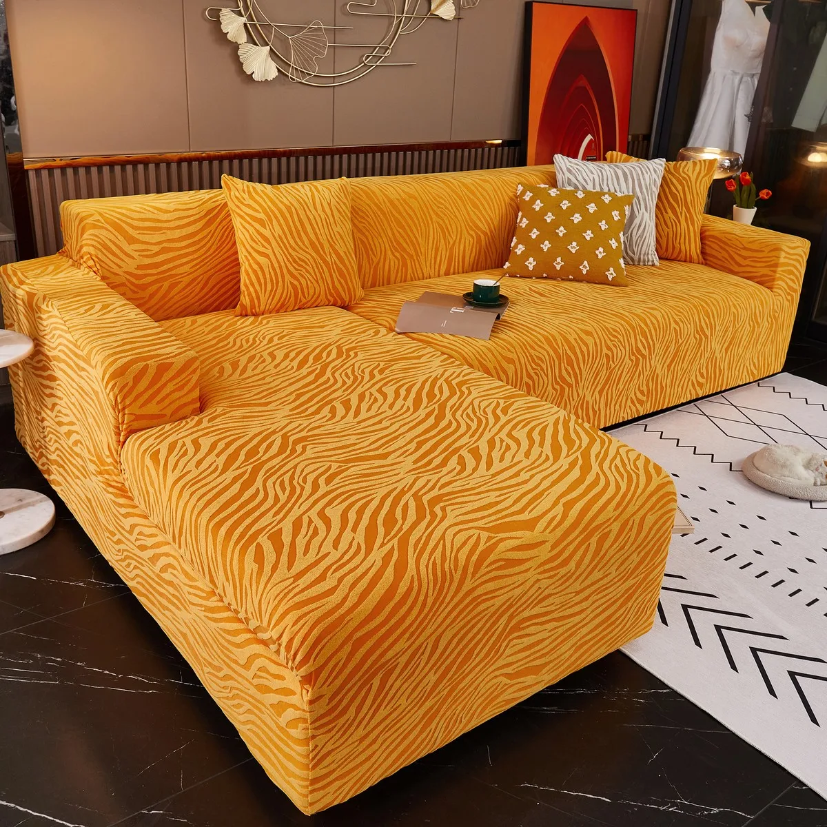 Эластичный чехол для дивана для гостиной, бархатный плотный жаккардовый чехол для дивана, облегающий растягивающийся L-образный чехол для углового кресла