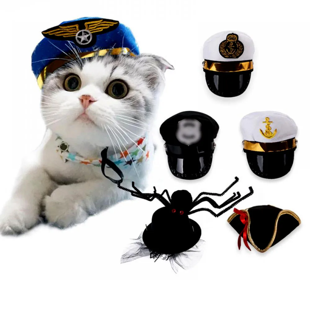 Креативные костюмы для домашних животных, косплей, шляпа для кошек, костюм собаки, костюм на Хэллоуин, полицейский, пиратский капитан, Сейлор, собака, шляпа для вечеринки, товары для домашних животных