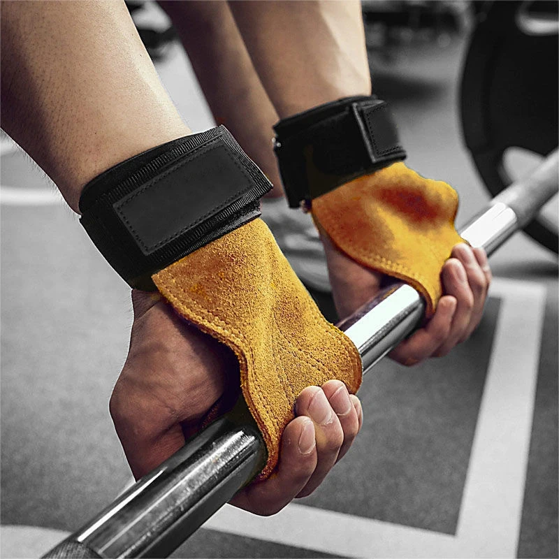 Перчатки для тренажерного зала, захваты, противоскользящий ремень для тяжелой тяжести, подъемные подушечки, пояс для стоп-лифтинга, тренировочные перчатки из воловьей кожи для кроссфита, защита ладони