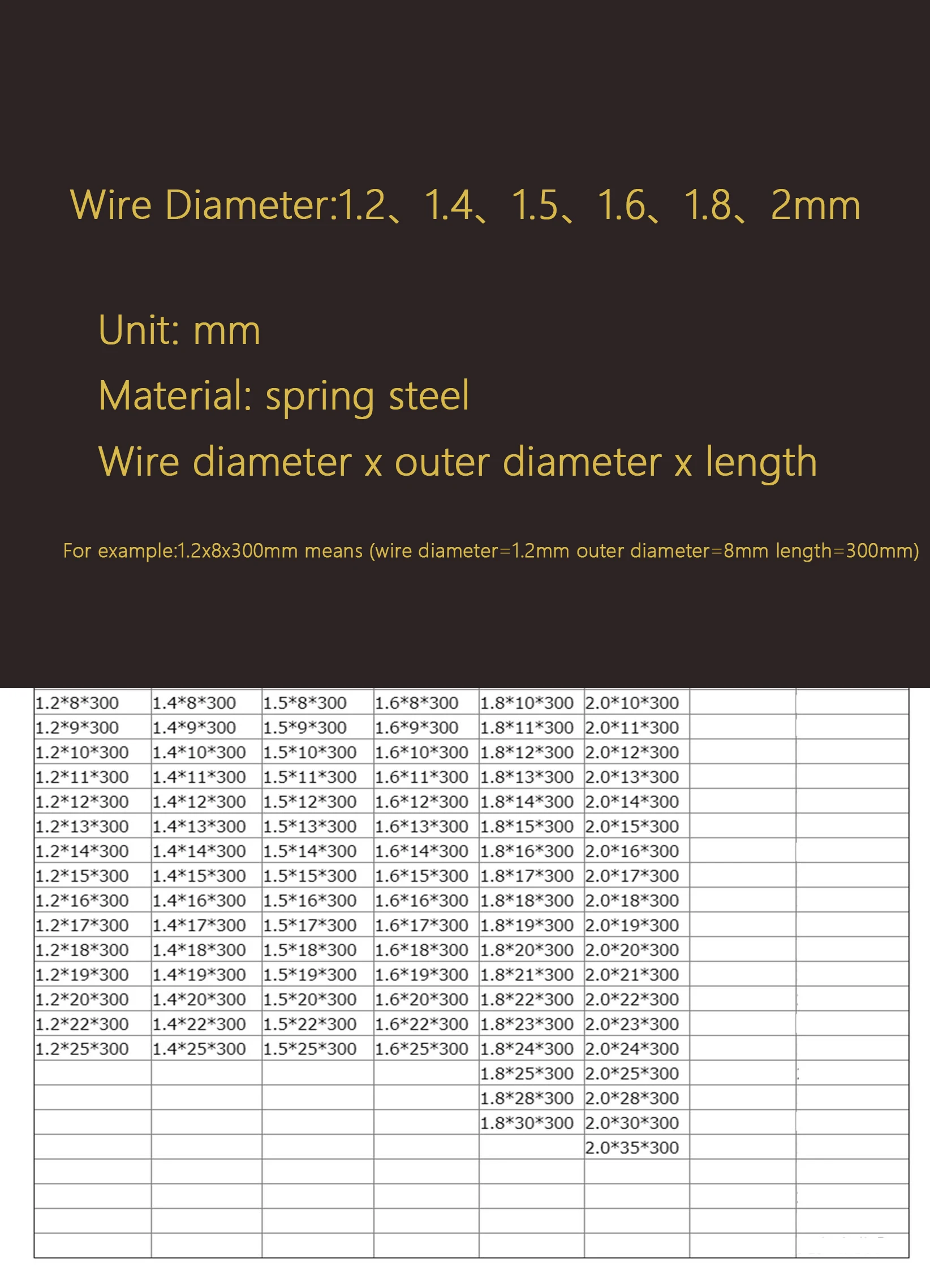 Диаметр проволоки 2 шт.: 1,2, 1,4, 1,5, 1,6, 1,8, 2 мм пружина Y-типа из стали с компрессионной пружиной длинная нажимная пружина Длина: 300 мм