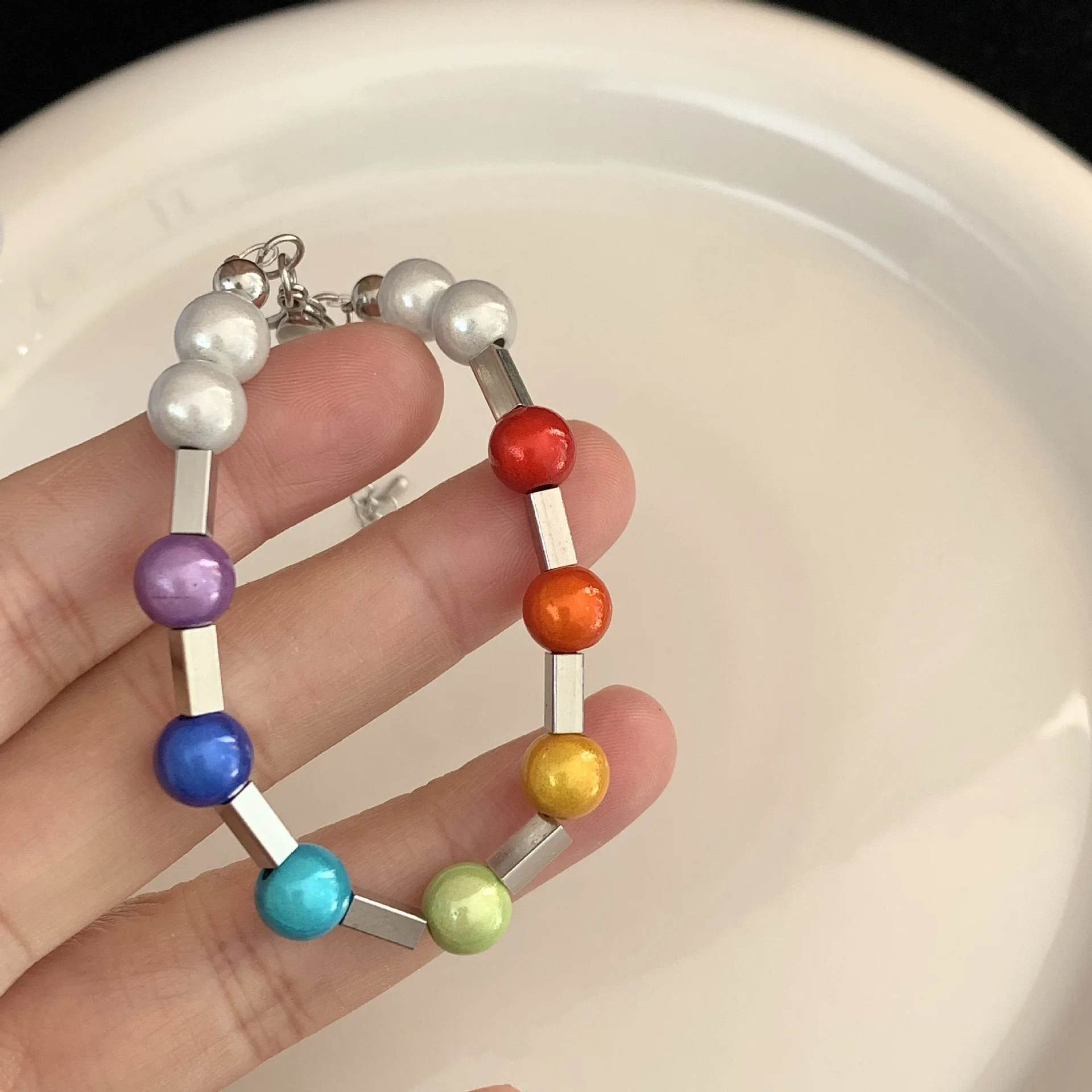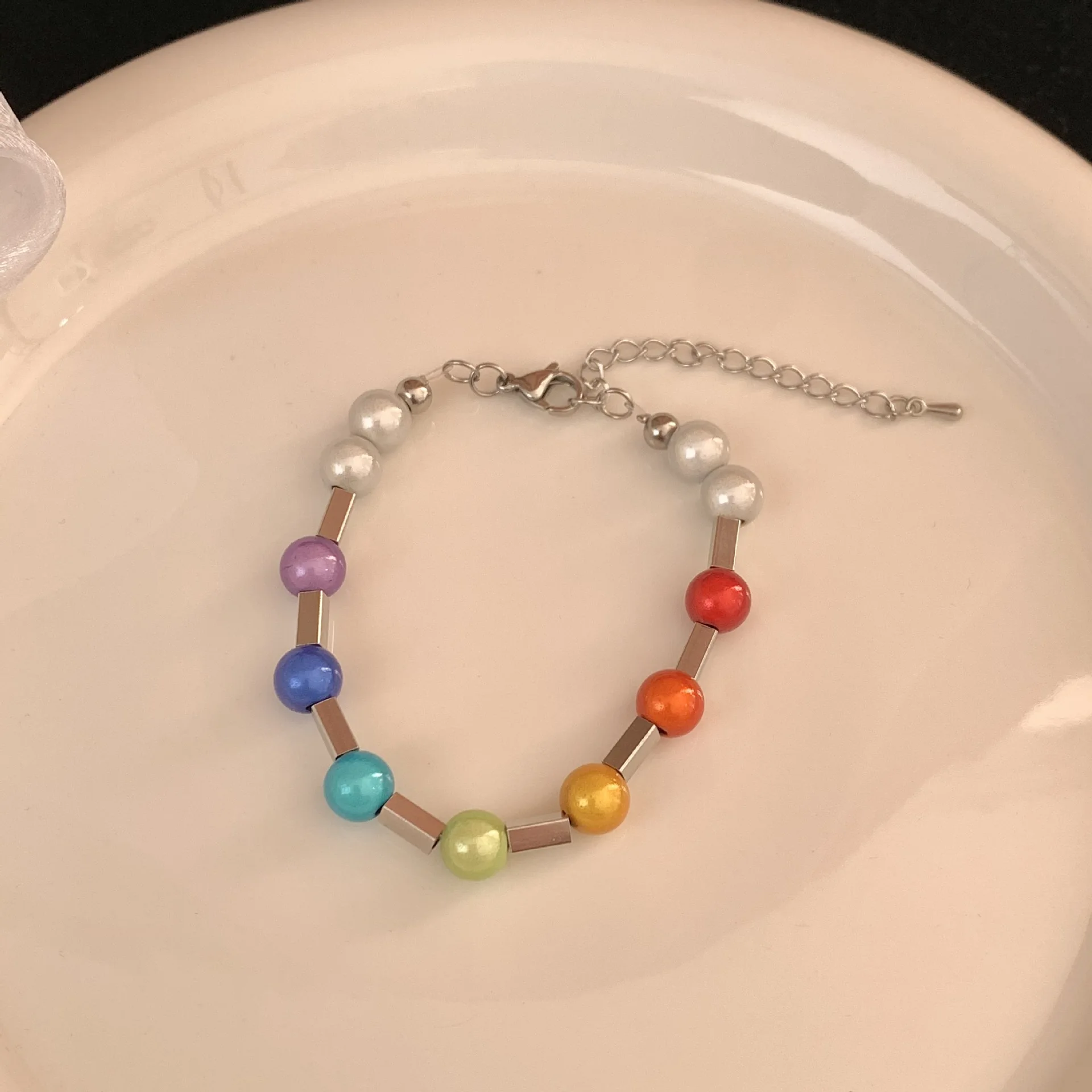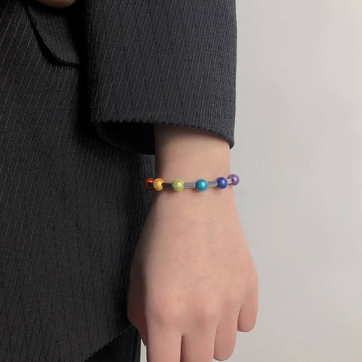 Браслет Ins восемь цветов со светящимися бусинами, браслет с радужными планетами мечты, отражающие бусины, браслет из титановой стали со строчкой, Женские Ювелирные изделия