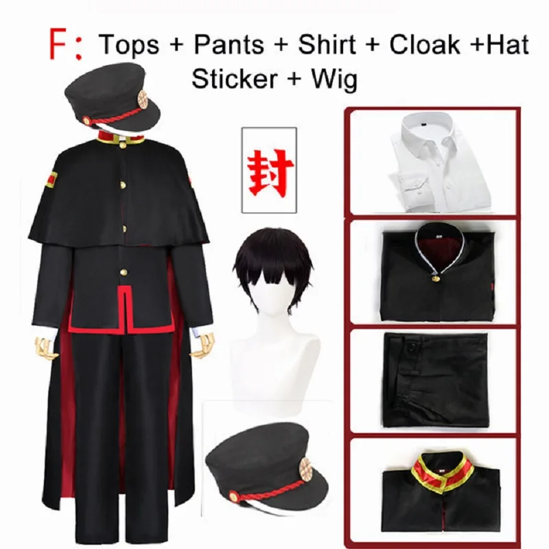 Костюм для косплея аниме Jibaku Shounen Hanako kun Yugi, унитаз, обтягивающий плащ, черный цвет, женский парик, шляпа