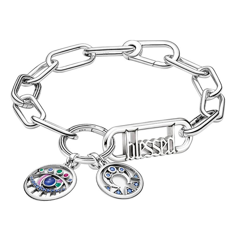925 серебряные серии Me, фиолетовые синие двойные звенья, дизайн слов, коннектор, медальон, мини-подвески, бусины, подходят для браслета Pandora ME, подвески