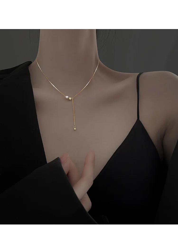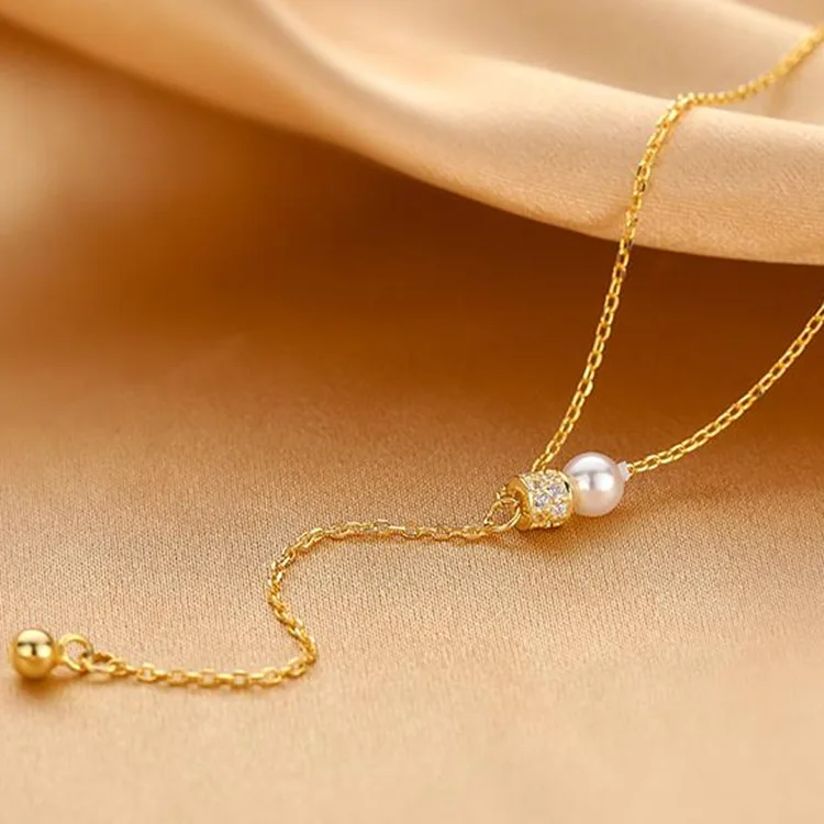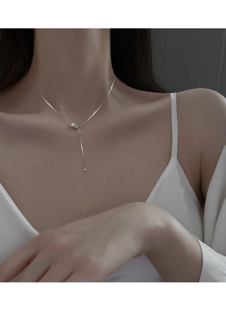 Трендовое ожерелье из стерлингового серебра 925 пробы с круглым бусинами и двойным кольцом, Женская цепочка для ключиц, модные ювелирные украшения