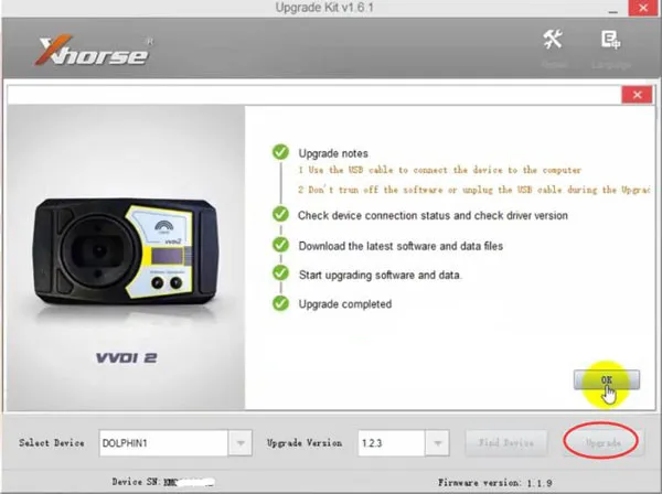 5. После установки драйвера запустите «комплект обновления» и выберите «найти устройство» еще раз, чтобы увидеть, можно ли увидеть серийный номер устройства и версию прошивки, не выбирайте «Обновить» до тех пор, пока вы не увидите это, потому что если вы не можете найти устройство, Это означает, что драйвер не установлен, и машина будет заблокирована, если вы обновите его без драйвера