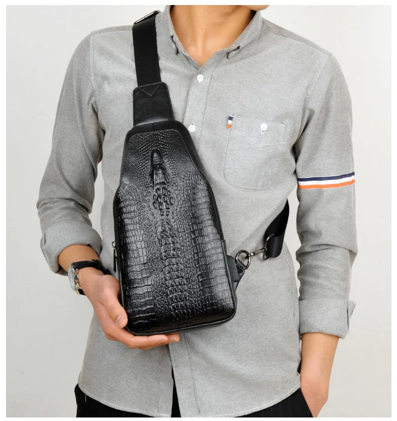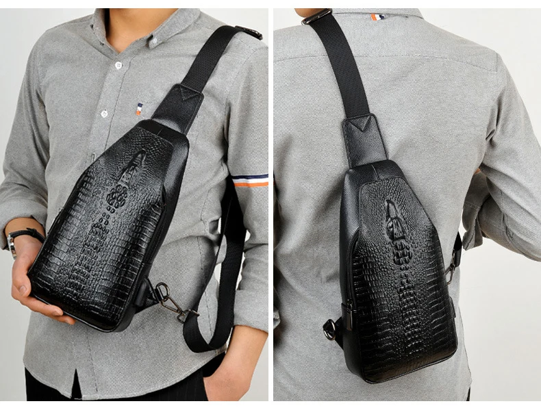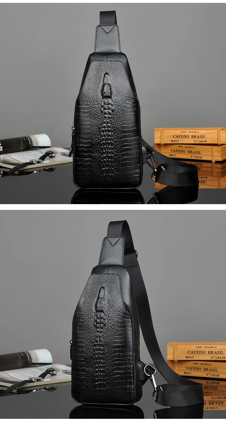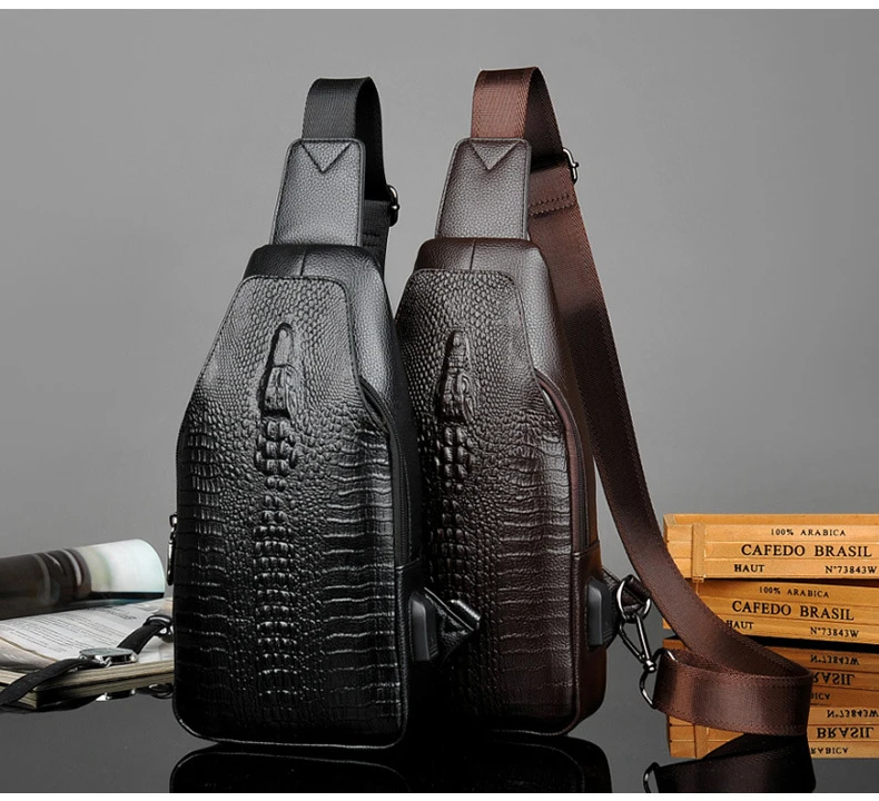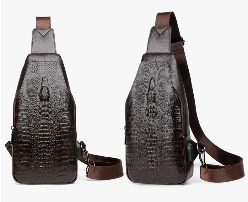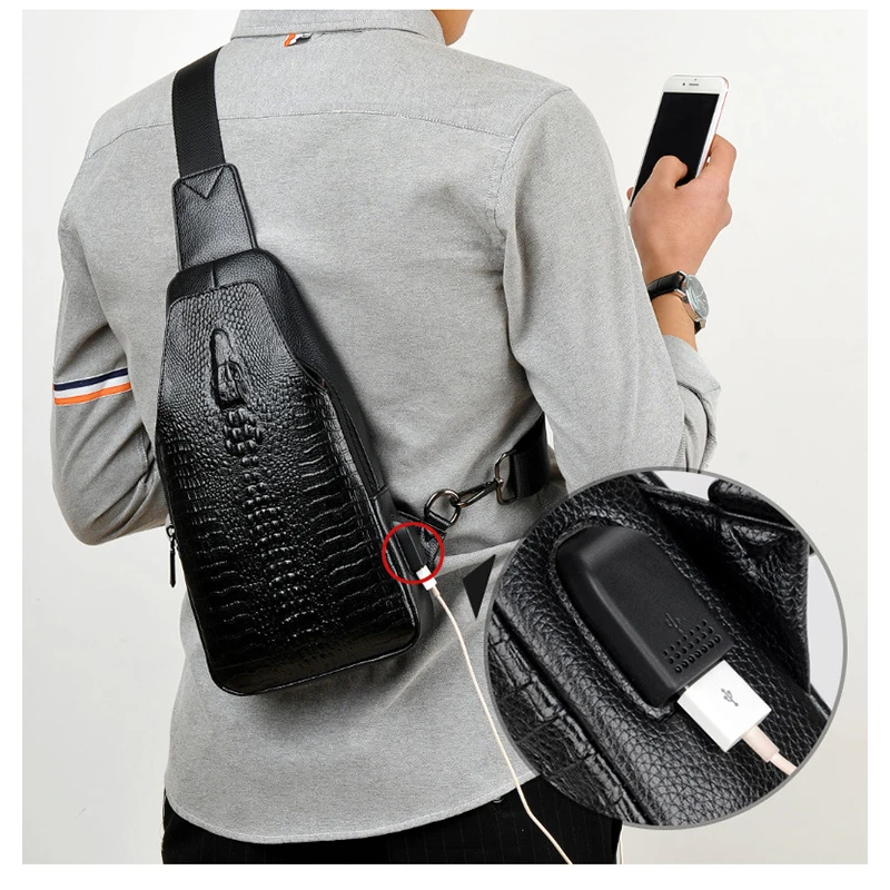 Мужская нагрудная сумка Peaker, сумка-мессенджер с крокодиловым узором и USB-зарядкой