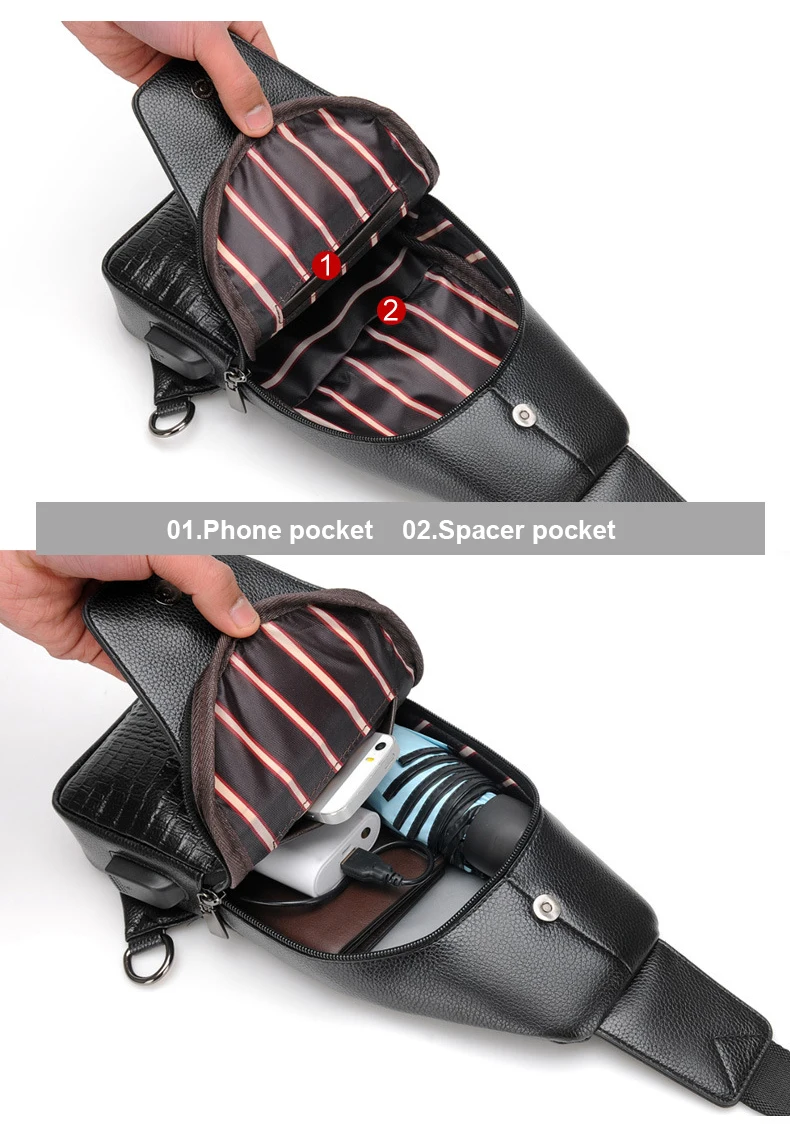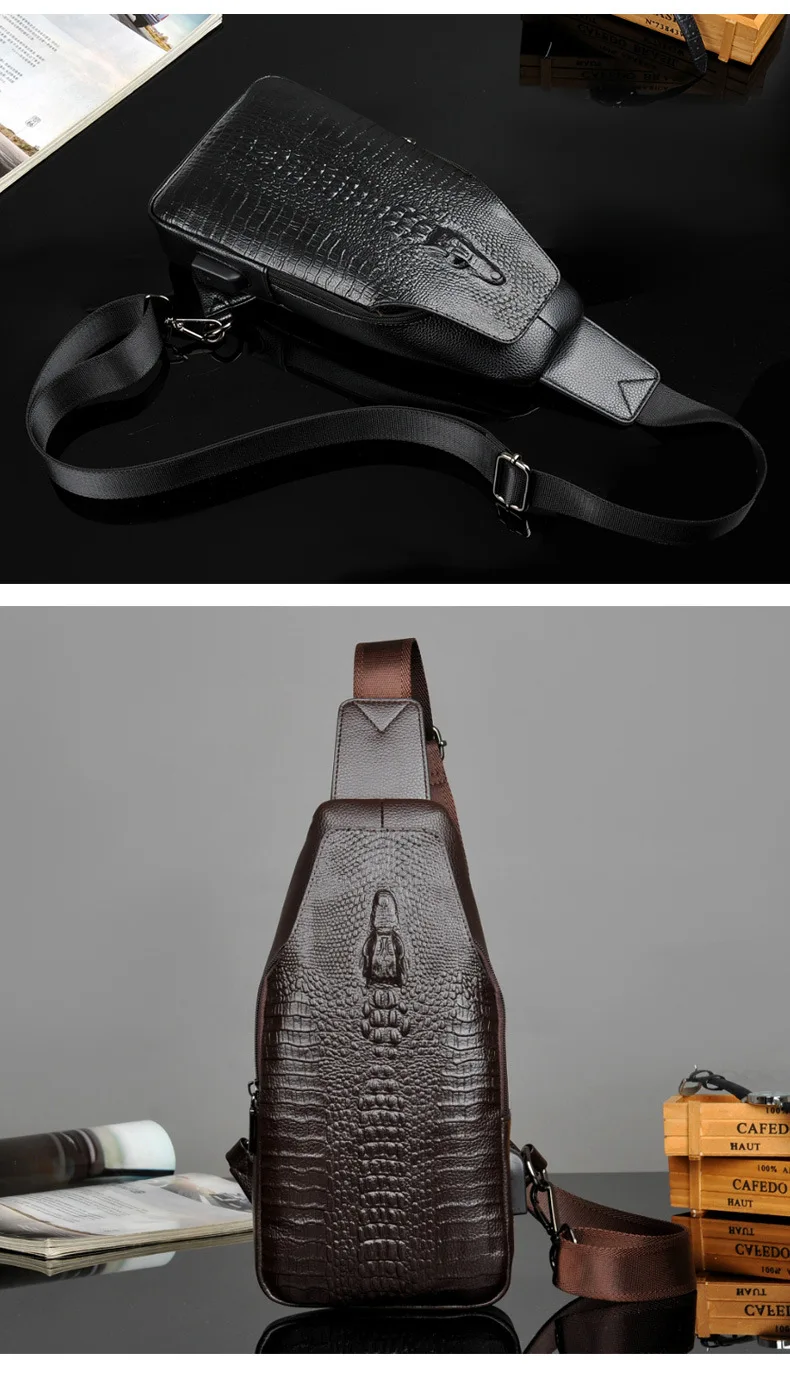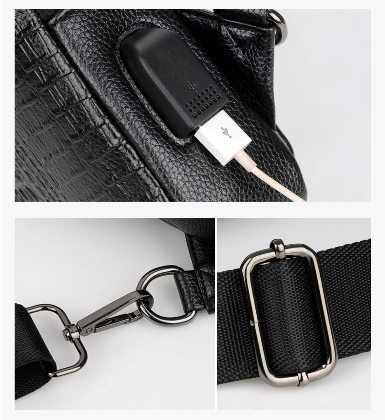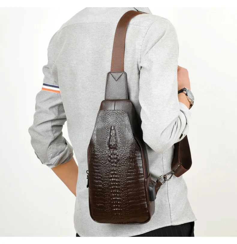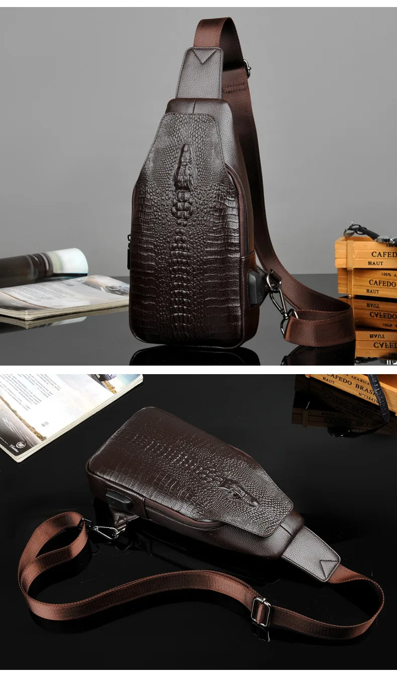Мужская нагрудная сумка Peaker, сумка-мессенджер с крокодиловым узором и USB-зарядкой