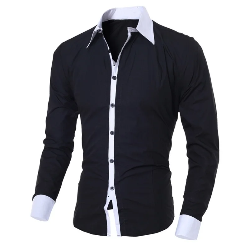 Мужские рубашки, модная индивидуальная мужская повседневная приталенная рубашка с длинным рукавом, топ, блузка, черный цвет, стиль белая мужская футболка
