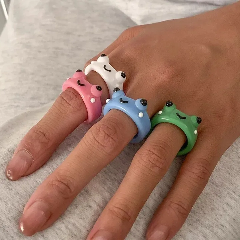 Акриловое кольцо в виде лягушки, кольца из полимерной смолы для жен...
