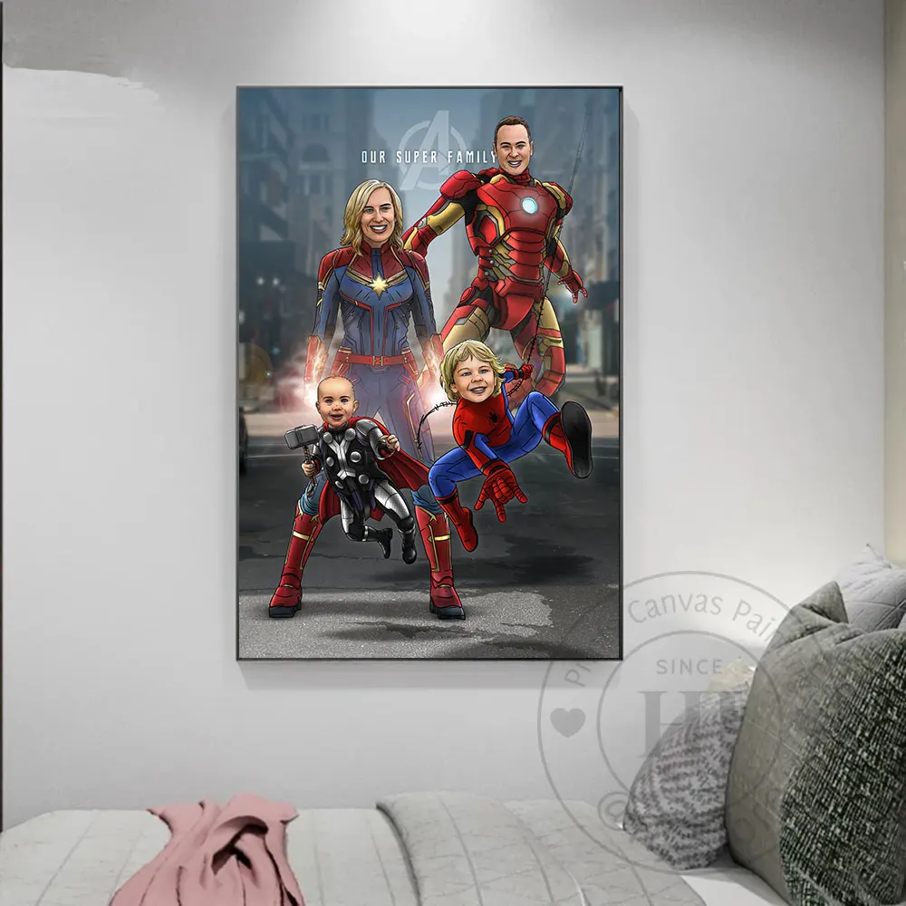 Превратите себя в Мстителей, семья супергероев Marvel, на 4 человека, холст, украшение для комнаты, картина в подарок, рождественский, новогодний декор